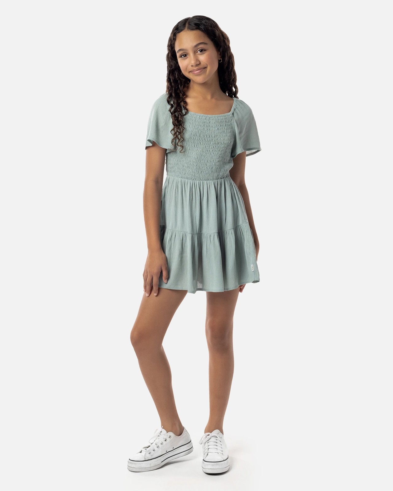 For simple one-step styling, throw on the sage green Piping Hot mini skater dress with sneakers or sandals, to suit any occasion.