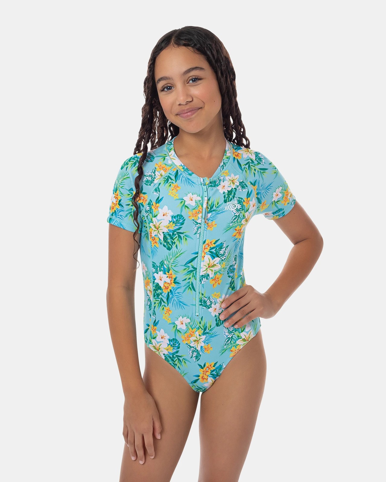 Great for the beach or the pools, comes this Piping Hot floral surfsuit with excellent UPF 50+ sun protection. Includes long sleeves, a front zip through opening and unique double knit fabrication for comfort and warmth.