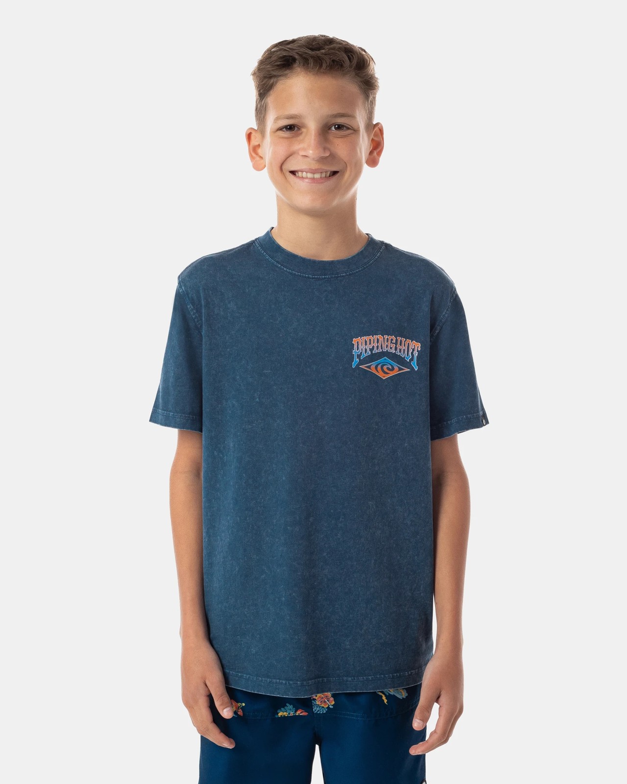 An effortless take on a vintage surf tee by Piping Hot, in an easy-to-wear navy colourway with a branded graphic on front and back.
