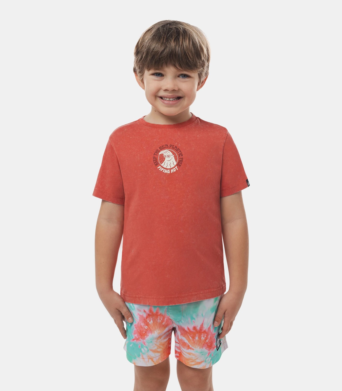 The cutest surf tee by Piping Hot, in a fun red colourway with a branded graphic on front and back.