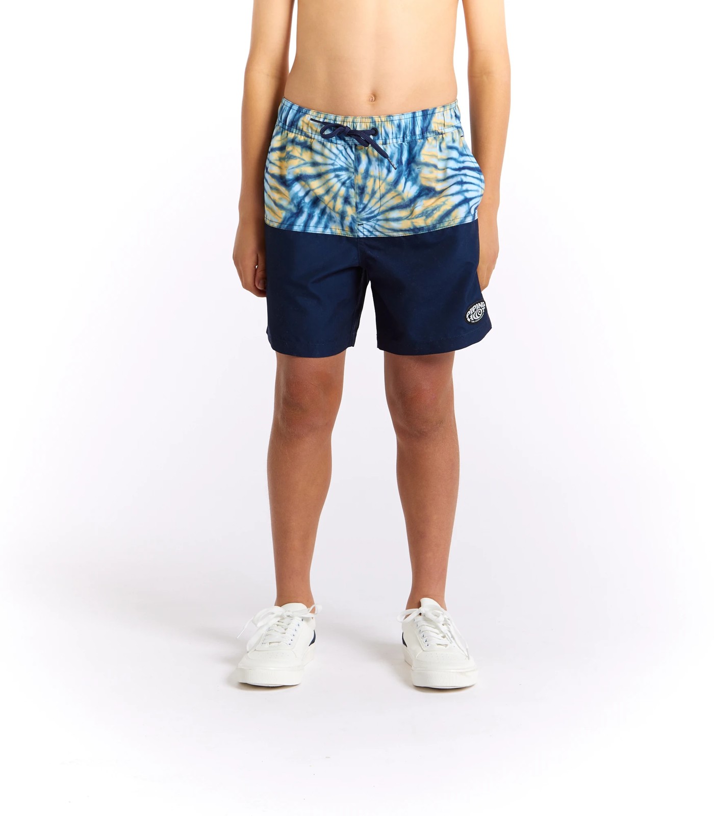 Get ready for some serious fun in the sun with these easy wear Piping hot boardshorts. Designed for both the pool and the beach, these boardshorts feature a trendy blue tie dye print with navy panelling. Made with recycled polyester, Piping Hot is committed to protecting our oceans. The regular fit and elastic waistband with drawcord ensure a comfortable and secure fit. Dive into the waves and make a splash with Piping Hot Tie Dye Boardshorts.