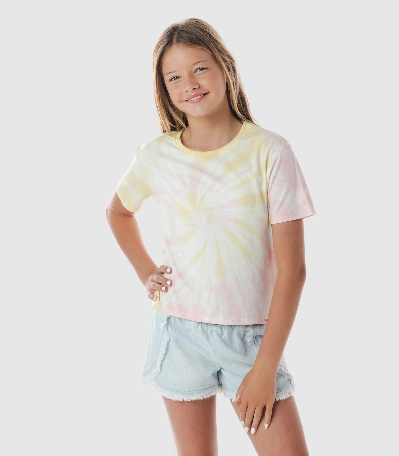 Step up your style game with this Piping Hot Tie-Dye Boxy T-shirt. Crafted with care, this t-shirt features a trendy tie-dye print that adds a pop of colour to any outfit. The boxy fit provides a relaxed and comfortable feel, while the ribbed round neckline and short sleeves add a touch of classic charm. Whether you're pairing it with jeans or a skirt, this t-shirt is sure to make a statement. Get yours today and embrace a fun and fashionable look.