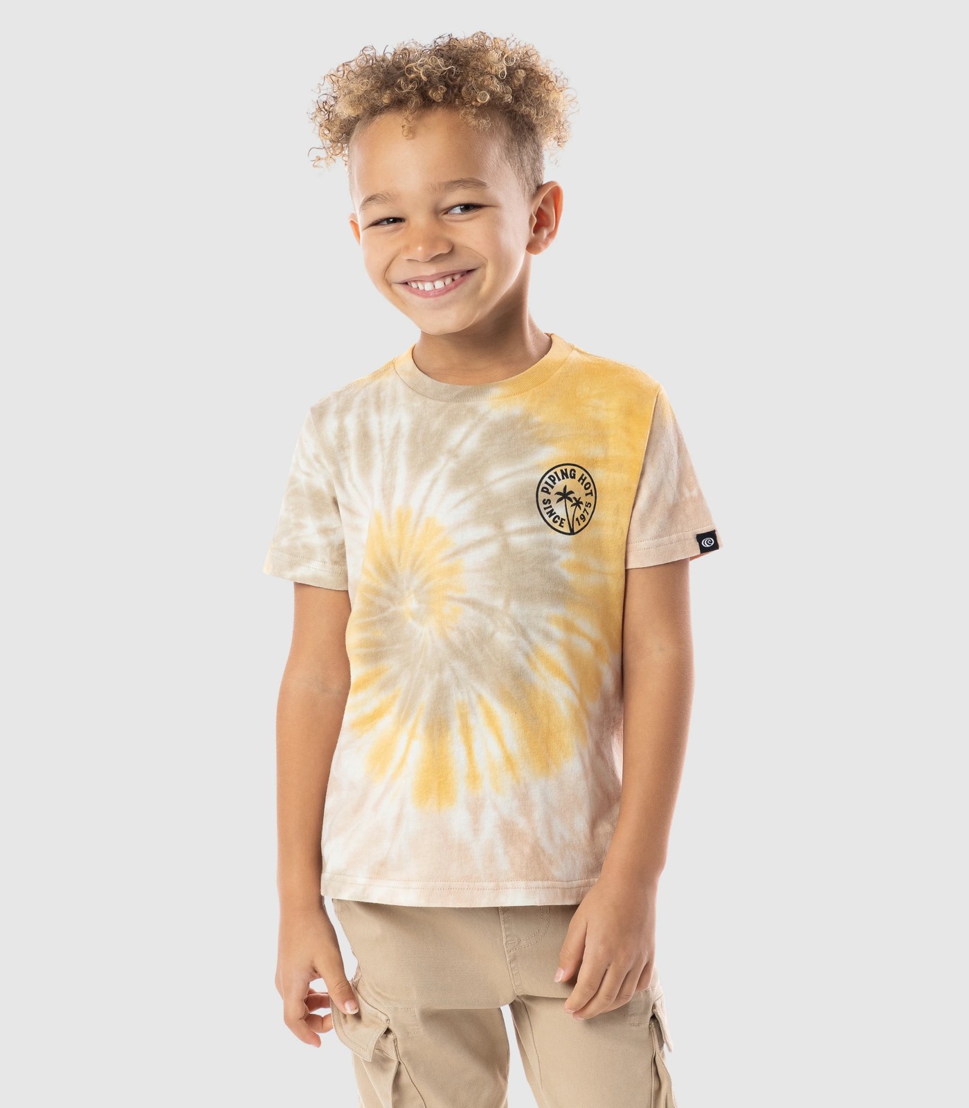 Introducing our vibrant Piping Hot tie dye t-shirt designed for beach loving boys who enjoy outdoor and indoor play. This stylish t-shirt comes in sunwashed tones that add a touch of uniqueness to your child's wardrobe. Made from high-quality cotton, it offers ultimate comfort and breathability. Get ready to make a fashion statement this season with our Piping Hot tie dye t-shirt.