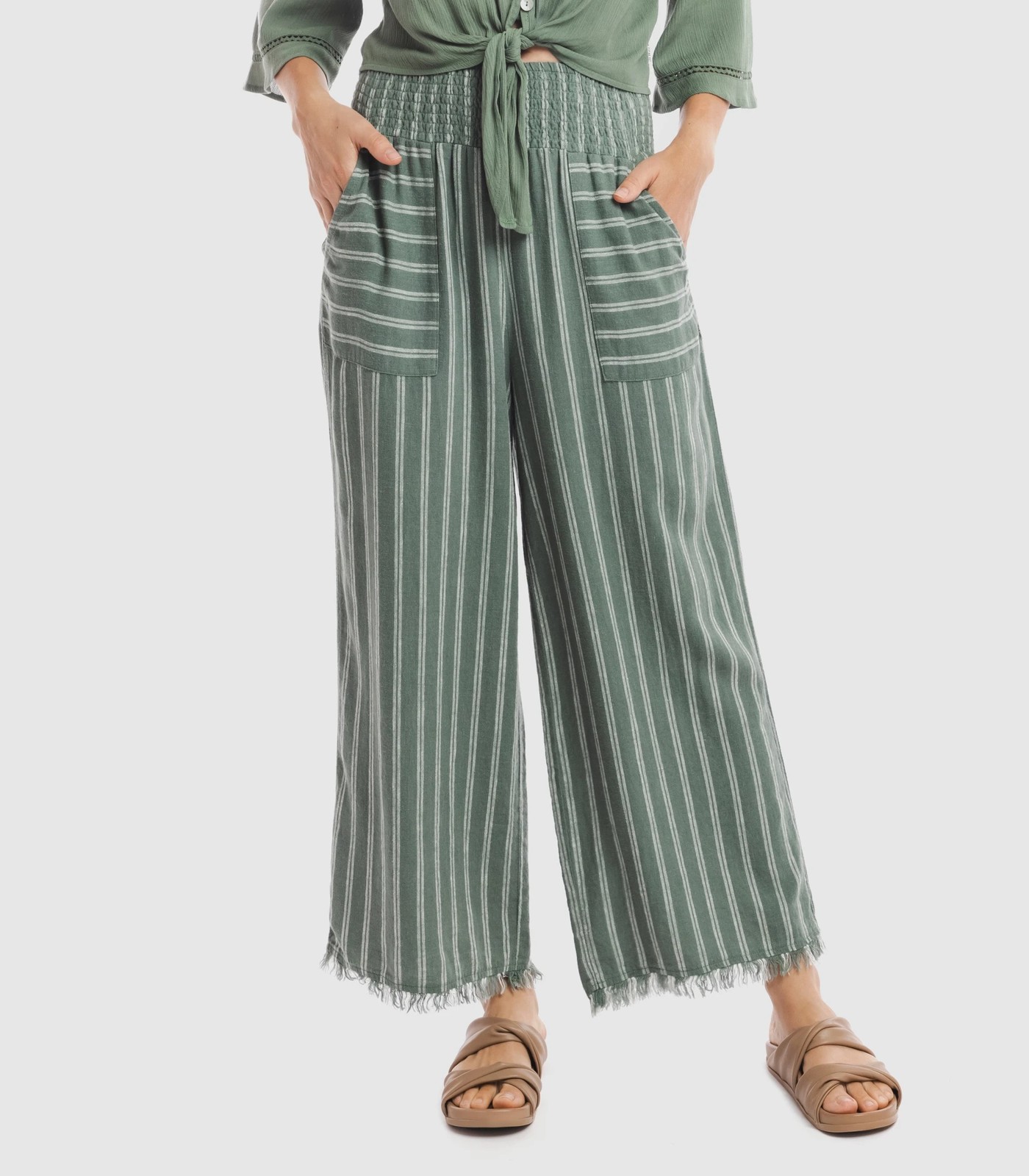 These Piping Hot beach pants deliver relaxed and casual cool. These wide leg linen viscose pants combine comfort and style, as a pull-on style in a sophisticated stripe fabrication.