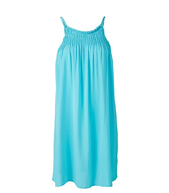 This casual dress is great for the weekends or to wear over your bathers at the beach. The sleeveless dress is made from a lightweight fabric and features a plait neckline and straps, ruched detail front and back and small keyhole closure at the back of the neck. The loose swing fit makes it comfortable and cool to wear.