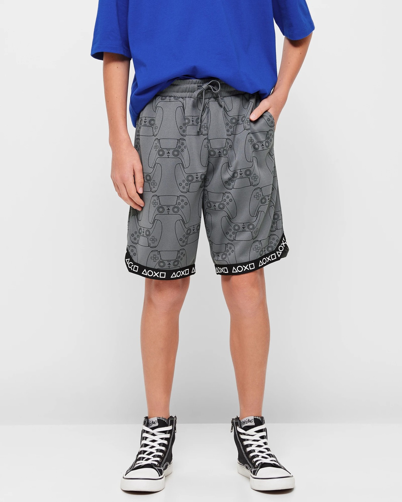 These stylish Playstation Basketball Mesh Shorts are the perfect choice for any active boy. Crafted from polyester mesh, these shorts feature a grey all over Playstation controller pattern for a cool and unique look. An elastic waistband with drawcord and side pockets make them both comfortable and functional. Finished off with a black Playstation hem trim, these shorts are sure to make a statement.