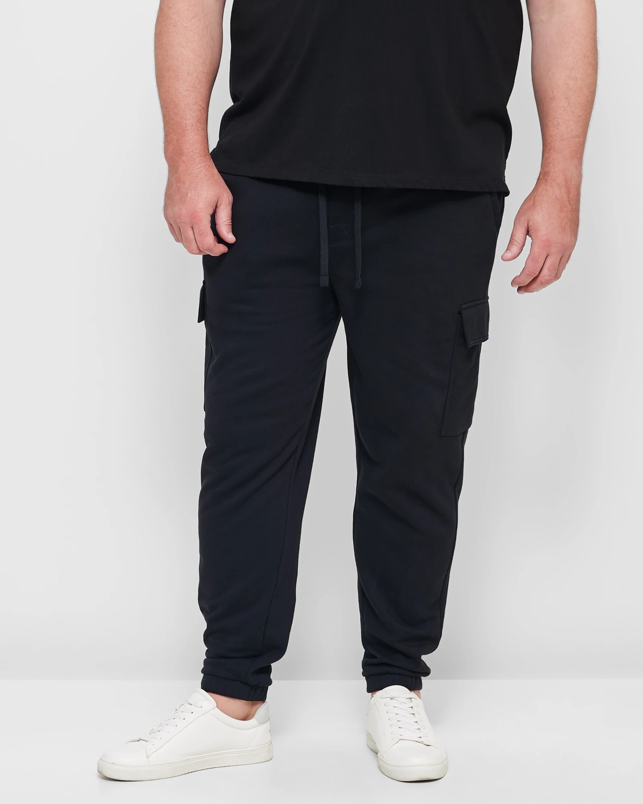 Discover the Ultimate in Comfort and Style. Our Plus Cargo Trackpants are perfect for any casual outing. Made from a cotton/polyester blend, these trackpants ensure you move in comfort all day long. With a regular fit and an elastic waistband with drawstrings, you get the perfect fit every time. Designed with utility in mind, the side pockets and cargo leg pockets with touch fasteners provide ample space for your essentials. The cuffed elastic ankles offer a snug finish, giving you a sleek look. Get your size today!