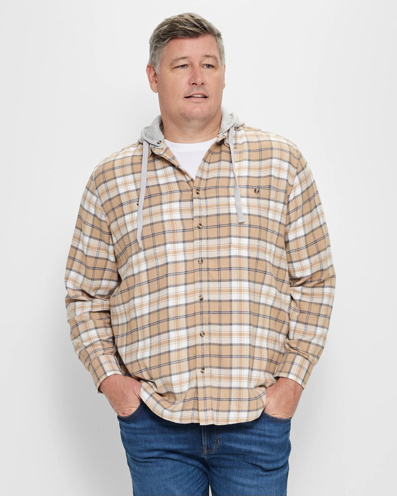 Upgrade your wardrobe with our Check Print Hooded Shirt. Made from a soft and breathable blend of cotton and polyester, this shirt offers maximum comfort and durability. The double brushed fabric adds an extra layer of warmth, making it perfect for those cool autumn days. The regular fit ensures a flattering look, while the collared neckline with hood and drawstrings adds a stylish and versatile touch. Add this versatile piece to your collection and embrace effortless style.