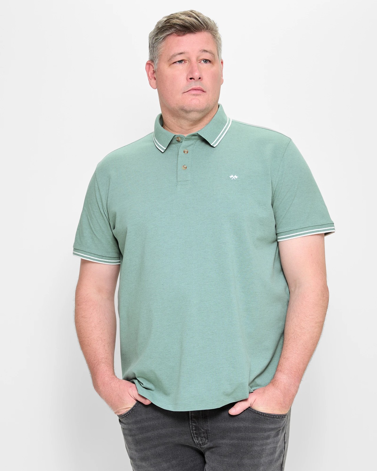 Discover ultimate comfort with our Plus Size Australian Cotton Blend Tipping Pique Polo Top. Designed with a blend that includes soft Australian cotton, this top offers a light feel, perfect for everyday wear. The classic round rib collared neckline with stylish double stripe detail and short rib cuff sleeves adds a touch you’ll love. The embroidered cross over flags logo on the chest and the straight hemline with small side seam splits complete the look. Experience the blend and make it a part from your wardrobe.
