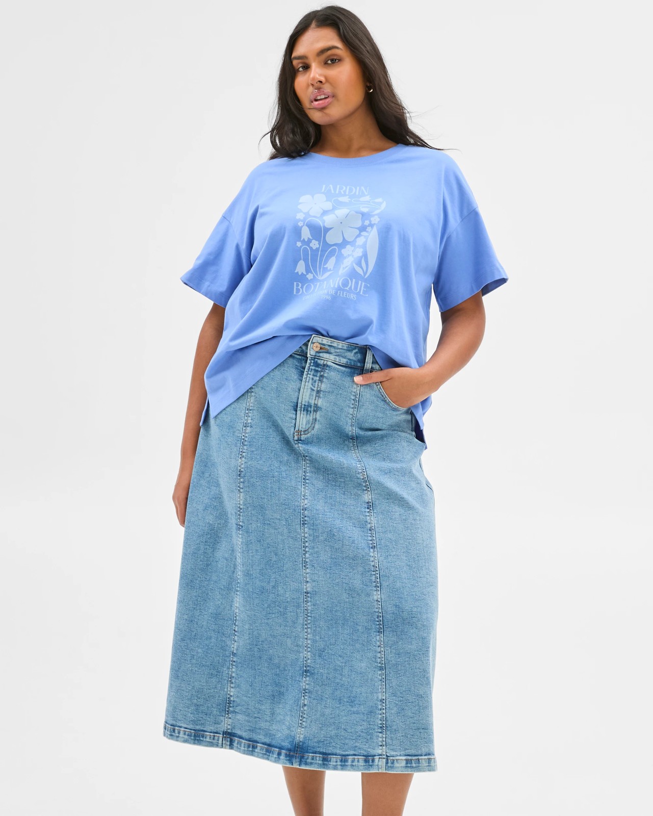 Plus Size Australian Cotton Graphic Split Hem T-Shirt - Ultramarine Jardin
