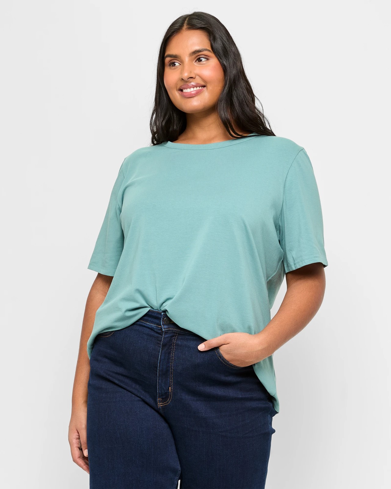 Discover a new level in comfort and style with our Plus Size Australian Cotton T-Shirt. Specialised for a fuller figure, this t-shirt features a cotton-rich fabric that stretches, offering you comfort all day long. The Australian cotton ensures you remain cool and fresh, while its regular fit offers an effortlessly chic look. With a classic crew neckline and short sleeves adding to its timeless charm, the t-shirt also includes a curved hem that complements your shape. This is your must-have tee for any casual outing. Enjoy the perfect fusion where style meets comfort. Shop now and upgrade your wardrobe essentials!