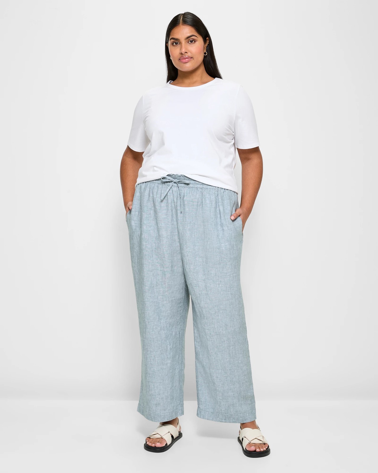 Indulge in comfort and style with our Plus Size European Linen Wide Leg Pants. Crafted from premium European linen, these pants offer a light and breezy feel, perfect for any occasion. The regular fit and wide leg design provide a flattering silhouette, while the elastic waistband ensures a comfortable fit. With side seam pockets and ankle-length cut, these pants offer both practicality and elegance. Elevate your wardrobe with these versatile trousers!