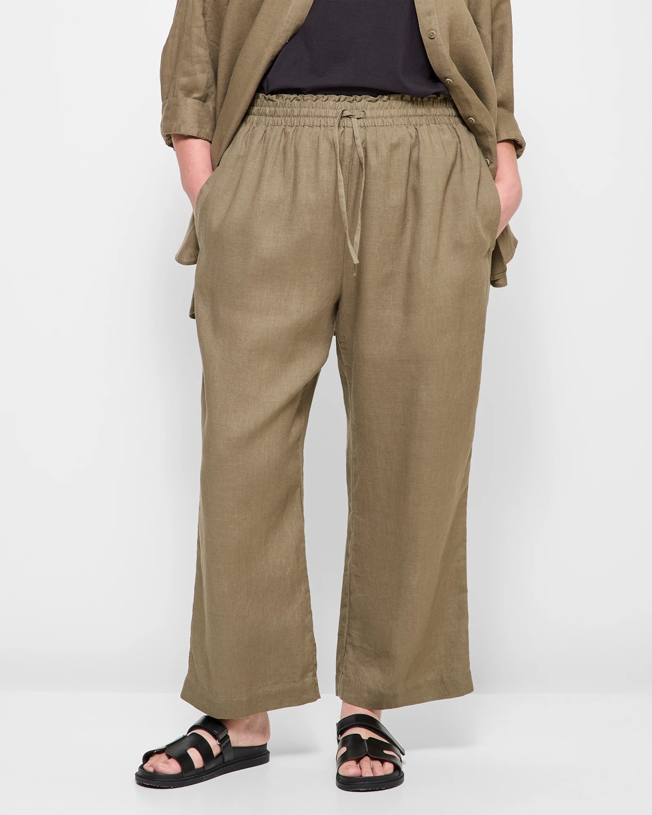 Plus Size European Linen Wide Leg Pants - Dusty Olive
