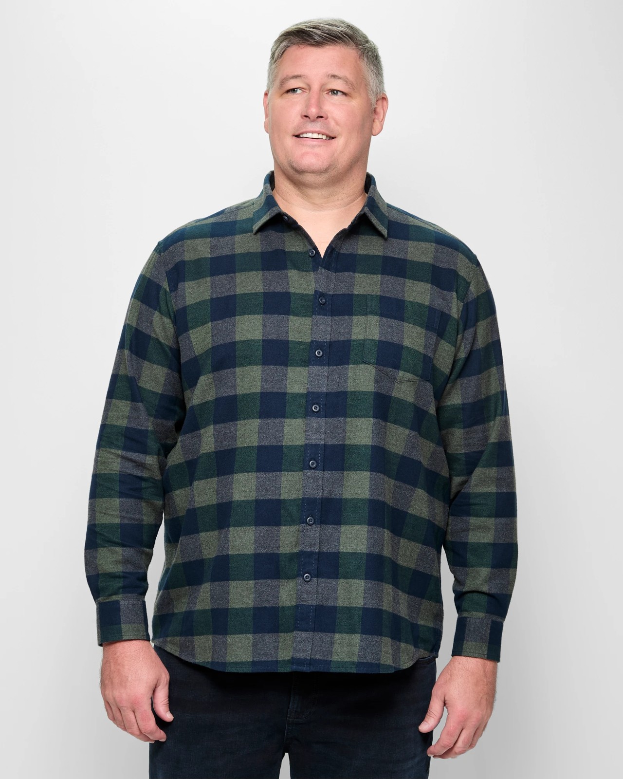 Experience ultimate comfort with our Plus Size Flannelette Shirt, made from high-quality cotton. This shirt is soft and light, showcasing a full double brushed flannel pattern. Designed with a regular fit, it features a classic round collar, button-through front, and long sleeves with cuff buttons. Practicality meets style with an open chest pocket and curved hemline. The back centre pleat ensures added ease of movement. Make this versatile piece a staple in your collection today.