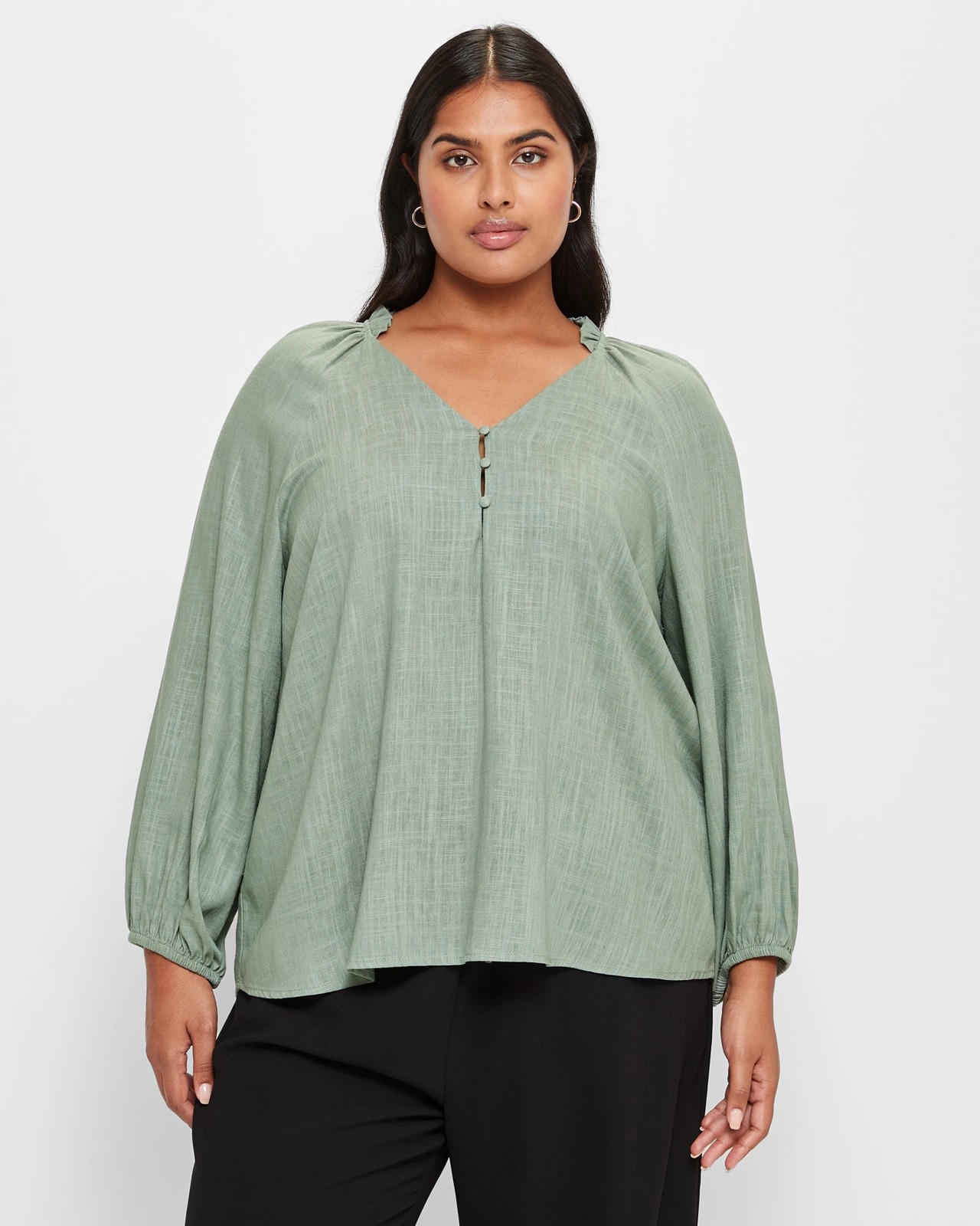 Discover the perfect addition to your wardrobe with our Plus Size Frill Collar Blouse. This elegant curve blouse is made from a lightweight and breathable viscose/linen blend that guarantees comfort all day long. With its regular fit and round neckline, it offers a flattering silhouette for any body shape. The upper frill and v-front add a touch of femininity, while the button-down front allows for easy wearing. The long elastic cuff sleeves and darting at the chest provide a stylish finishing touch. Complete your look with this versatile blouse, available in sizes 16 and up. Shop now and embrace your curves with confidence.