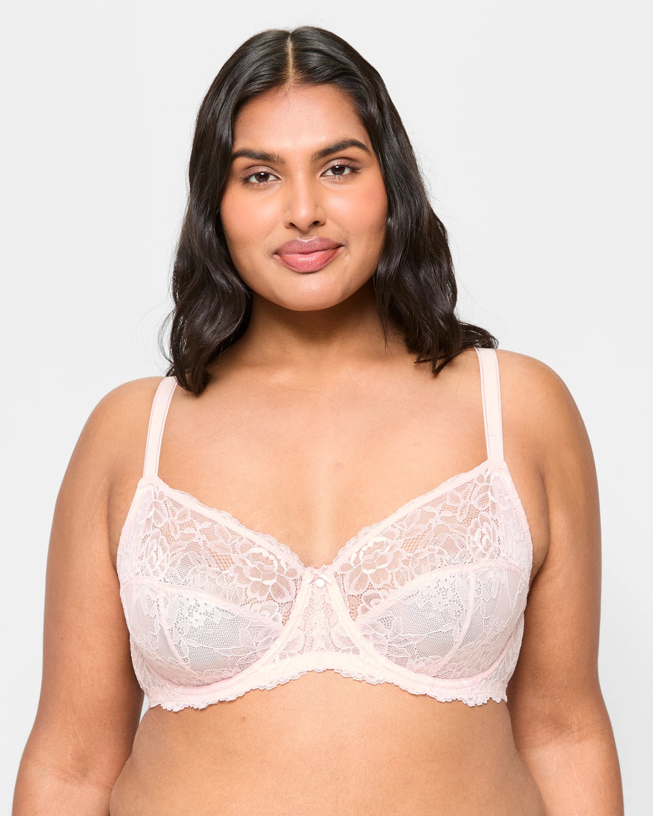 Discover unmatched comfort and style with the Plus Size Adriana Soft Cup Underwire Bra. This bra, made from a nylon-rich blend with stretch elastane, offers a stunning lace and mesh design. Its adjustable shoulder straps and complete coverage ensure a great fit, while the underwire provides superb support. A delicate bow and gold coin at the centre add a touch of charm. This bra is finished with scalloped lace edges and a back hook and eye closure, making it a fantastic addition to your wardrobe.