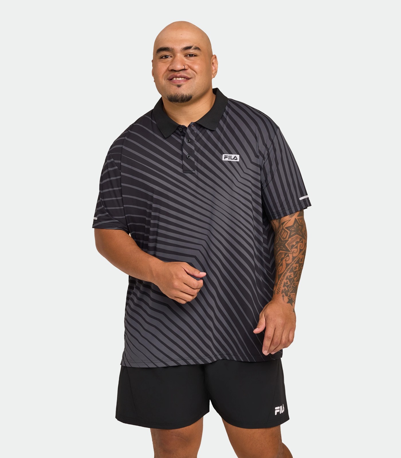 Step up your game with the Fila Plus Leyton Polo Shirt. Created with a blend that offers quick-drying comfort, this shirt ensures you stay cool and composed whatever your day brings. The reflective prints on the chest and sleeves add a touch of versatile style. The all-over print design and active branding make a statement, while thoughtful touches like the rib neck and side splits provide an exceptional fit. Experience the perfect blend between function and fashion with the Fila Plus Leyton Polo Shirt. Ready to redefine your wardrobe?