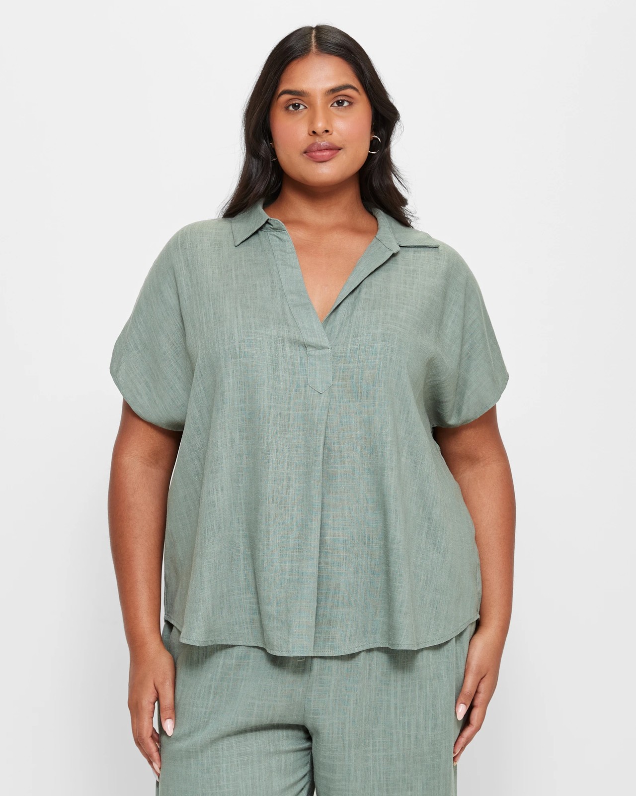Plus Size Linen Blend Curve Hem Top 1 of 5