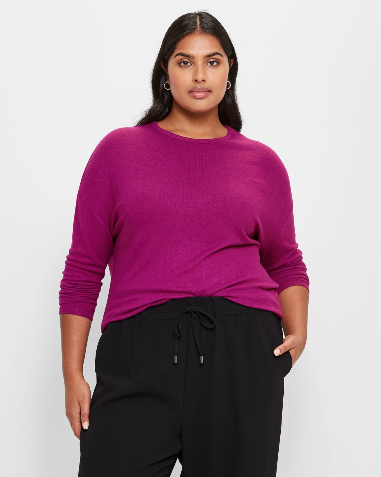 Introducing our Plus Size Long Sleeve Drop Shoulder T-Shirt, designed for curve-loving fashionistas. Made from a luxurious blend of viscose and polyester, this t-shirt offers unparalleled stretch and comfort. Its all-over ribbed design adds texture and style, while the soft-touch fabric feels amazing against the skin. The regular fit flatters your curves, and the crew neckline and drop shoulder design add a trendy touch. With long sleeves and a curved hemline, this t-shirt is perfect for any occasion. Don't miss out on this must-have addition to your wardrobe. Get yours now!