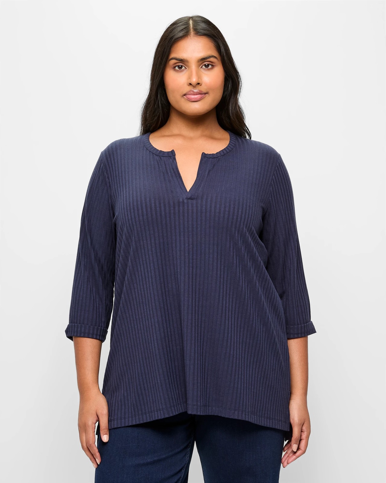 Experience unmatched comfort with our Plus Size Long Sleeve Henley Top, made from a soft blend of polyester and viscose, and enhanced with stretch elastane. This top features a classic round neckline with a refined V-front drop and long roll-cuff sleeves. The ribbed texture adds a touch of elegance, while the straight high-low hemline and side seam splits offer a relaxed fit. Ideal for everyday casual wear, this top beautifully blends style and comfort, perfect for enhancing your everyday wardrobe.