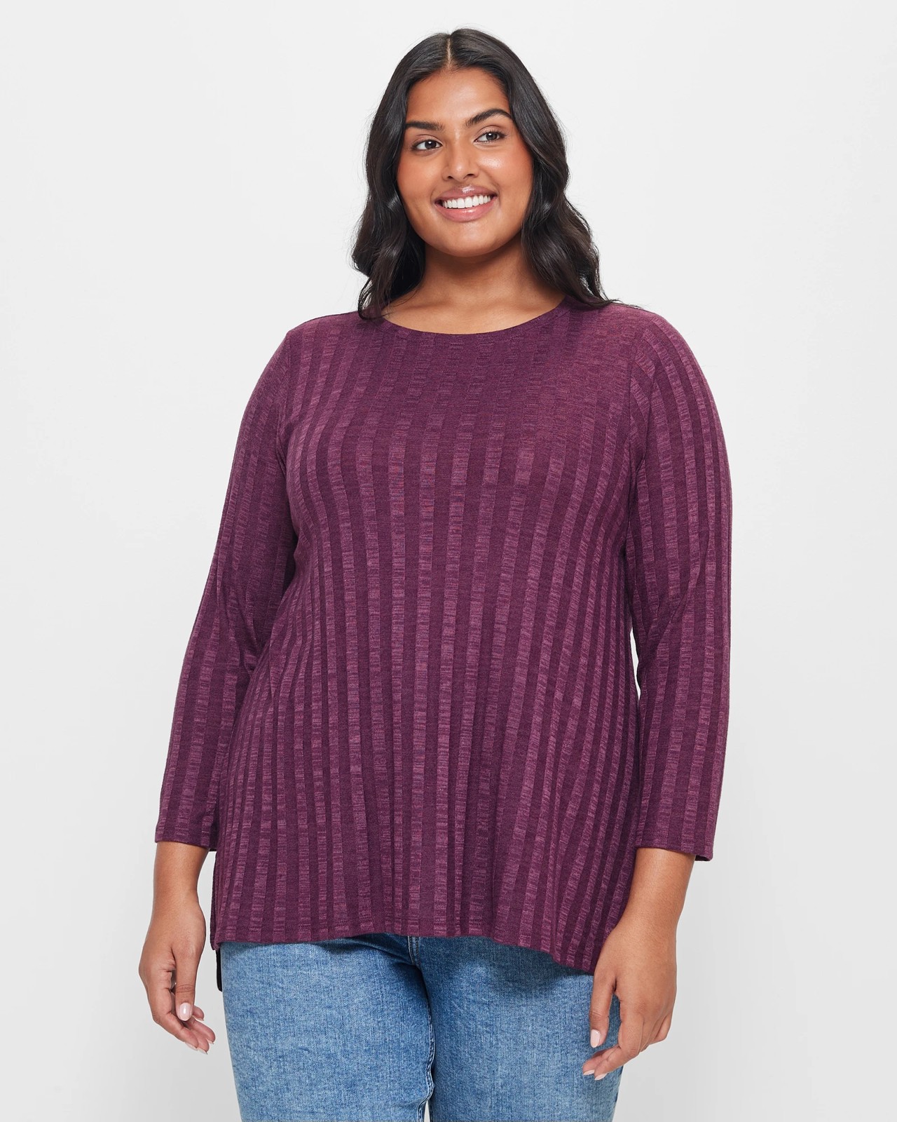 Indulge in comfort and style with our Plus Size Long Sleeve Ribbed Tunic Top. Crafted from a luxurious polyester/viscose blend, the top offers a perfect stretch for all-day wear. The relaxed fit, crew neckline and long sleeves provide a classy and cosy look. Featuring a chic ribbed design and side seam splits, the tunic is both trendy and versatile. Elevate your wardrobe with the long length and straight hemline of our tunic top. Treat yourself to a blend of fashion and comfort today!
