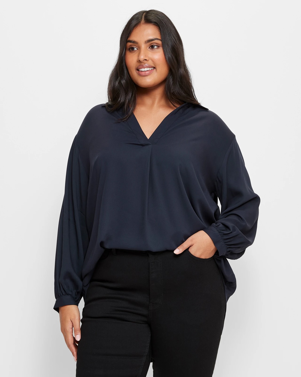 Discover the Plus Size Pleat Front Blouse, a chic addition to your wardrobe. Crafted from a soft viscose material, providing a light and comfortable feel. Its relaxed fit and elegant round collared neckline with v-front drop create a flattering silhouette. The standout feature is the pleat detail running down the front from the v-drop, adding a touch of sophistication. With long button cuffed sleeves and a curved hemline, embrace effortless style with every wear. Elevate your look with the perfect blend of comfort and style!