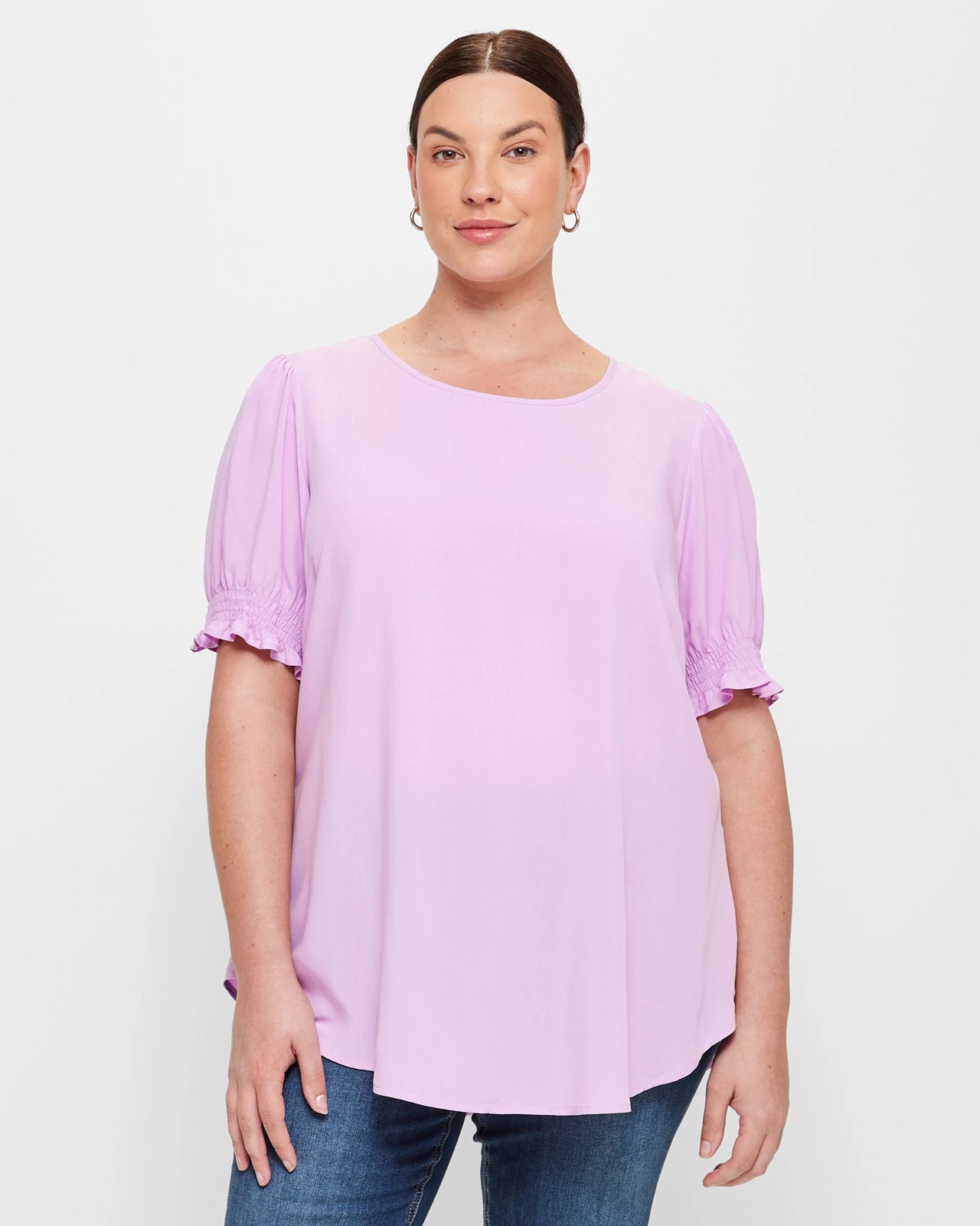 Made with a relaxed fit and designed for everyday wear, the Curve shirred cuff top will see you looking great as you get about your day. It features short shirred cuff sleeves, a round neckline, a lightweight material and a relaxed fit. Get yours now before they sell out!