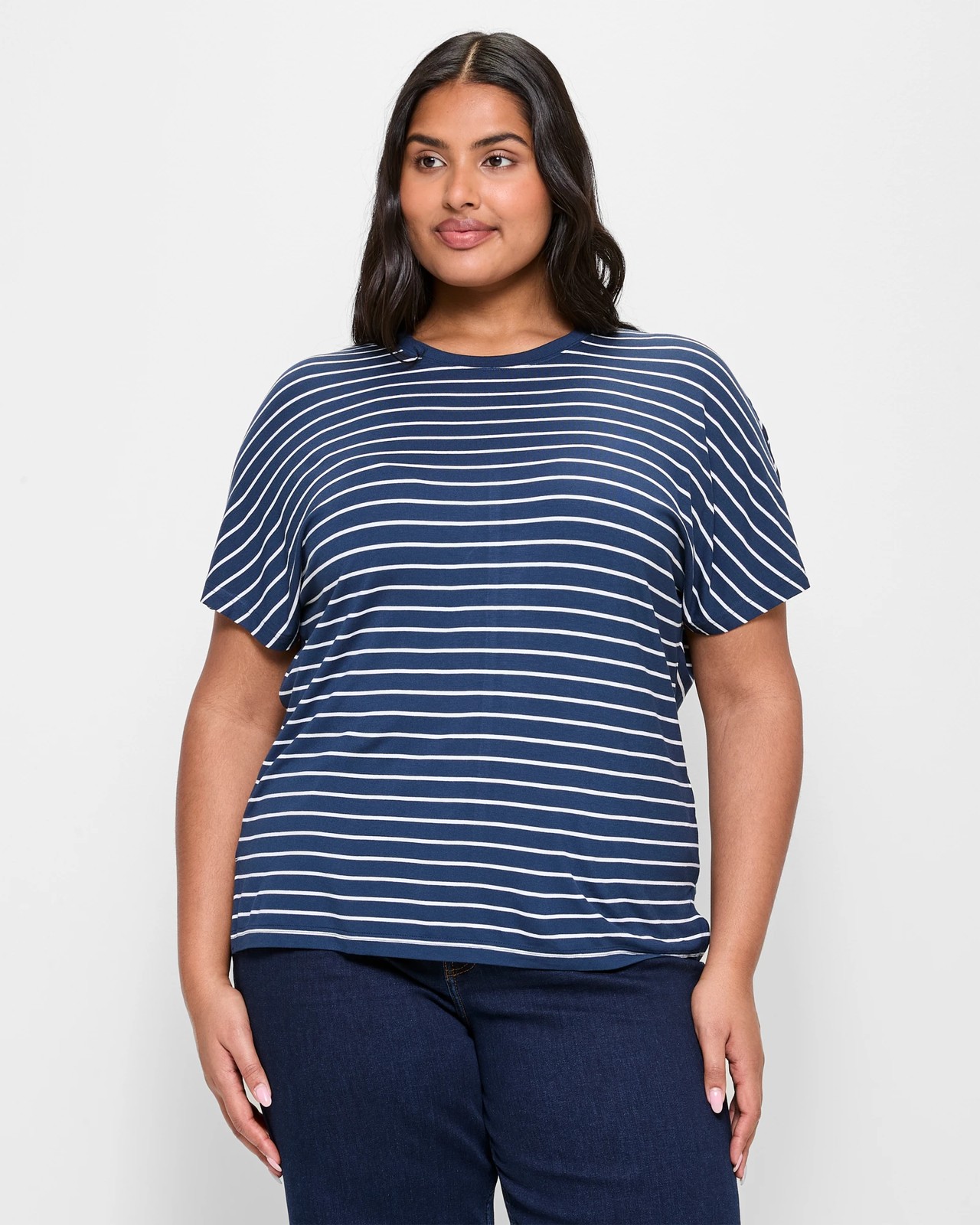 Discover the perfect blend of comfort and elegance with our viscose-rich Soft Crew T-Shirt, specially tailored to enhance your wardrobe. Featuring a stretch fabric that embraces your curves gently, coupled with a classic ribbed crew neckline and short sleeves for a polished look. Our t-shirt boasts a distinct design with a slightly longer back hem and sophisticated side splits, offering both style and ease of movement. The softness of the material ensures a pleasant feeling with every wear, making your day more enjoyable.