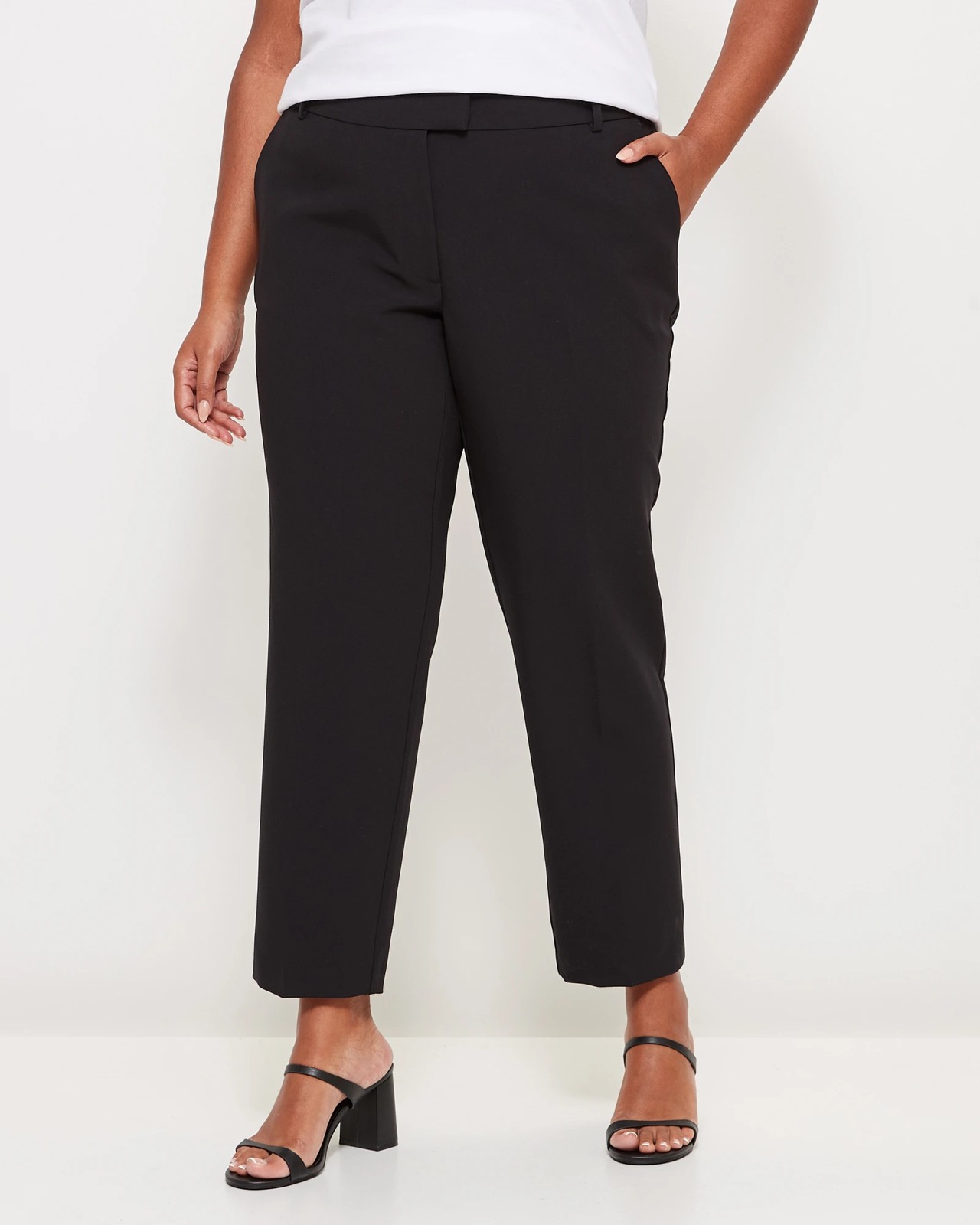 Discover the perfect fit with our Plus Size Straight Leg Work Pants. Expertly designed using a polyester and viscose blend, these trousers offer exceptional comfort and stretch, ideal for all-day wear. Featuring a thick straight waistband, double clasp and zip closure, they offer a comfortable and secure fit. The smart straight-leg cut, coupled with practical side pockets and a sleek black finish, makes them a versatile addition to your work wardrobe. Feel confident and stylish in our work pants. Upgrade your workwear today!