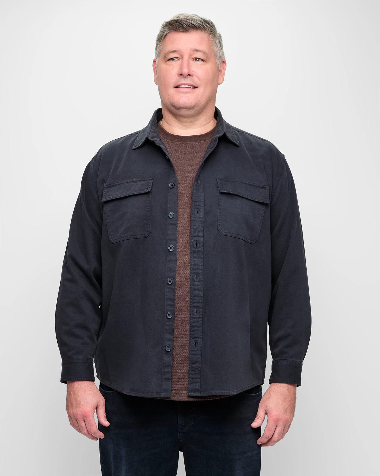 Discover comfort and style with our Plus Size Twill Overshirt. Made from breathable cotton, this shirt features a unique twill pattern throughout. The round collared neckline and regular fit ensure it looks great for any occasion. Functional elements include a button-through front, long sleeves with button cuffs, and handy chest pockets with fold-over tops. The curved hemline adds a modern touch. Perfect for everyday wear, this overshirt is a must-have addition to your wardrobe. Make it yours and enjoy effortless style and comfort.