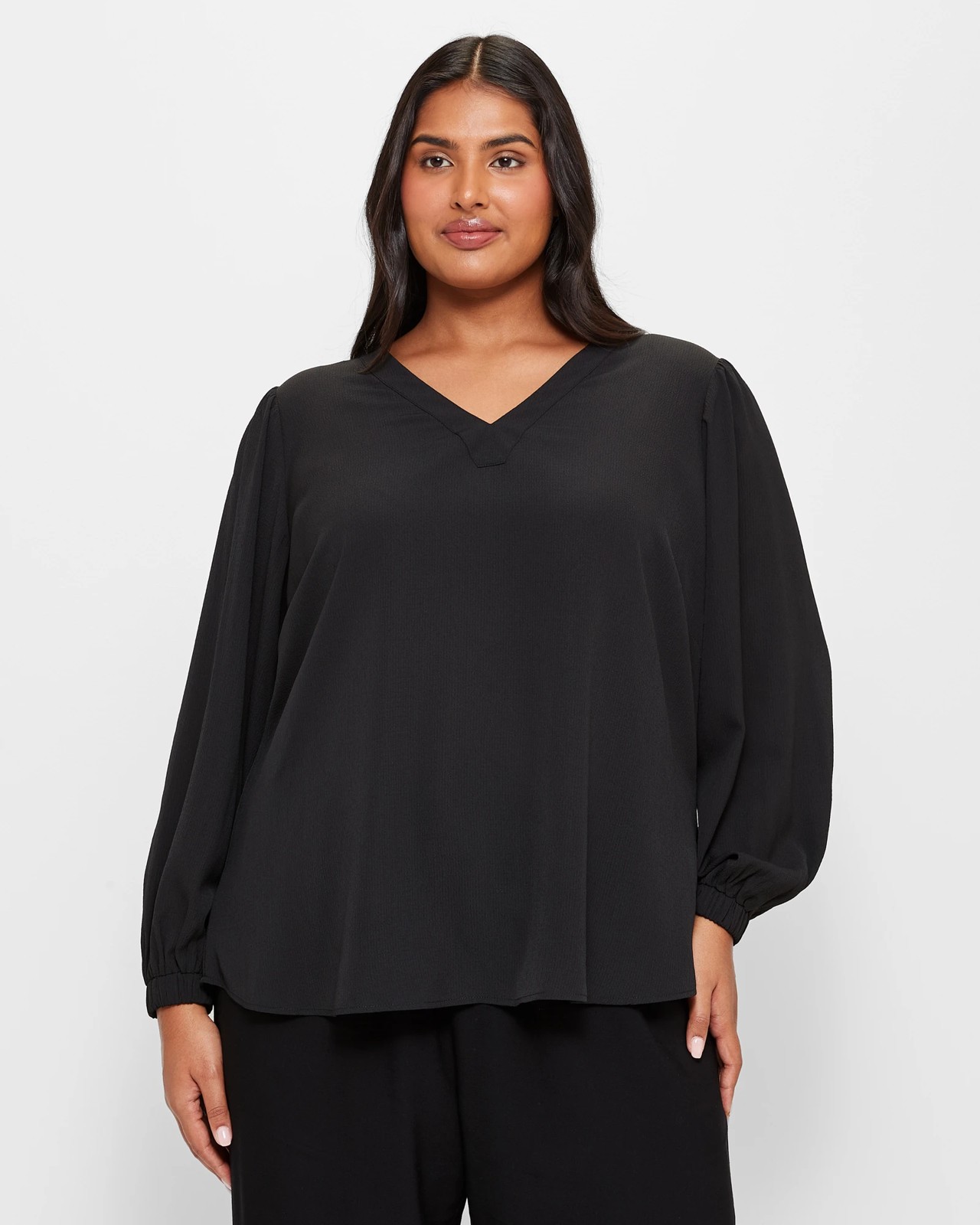 Enhance your wardrobe with our stylish Plus Size V-Neck Blouse. This flattering blouse is designed to provide a comfortable and elegant fit, thanks to the polyester rich fabrication and stretch material. The textured material adds a touch of sophistication, while the V-neckline and gathering around the shoulders create a chic look. With long elastic cuff sleeves and a curved hemline, this blouse offers both style and versatility. Experience the perfect blend of fashion and comfort with our beautiful blouse. Elevate your ensemble today!