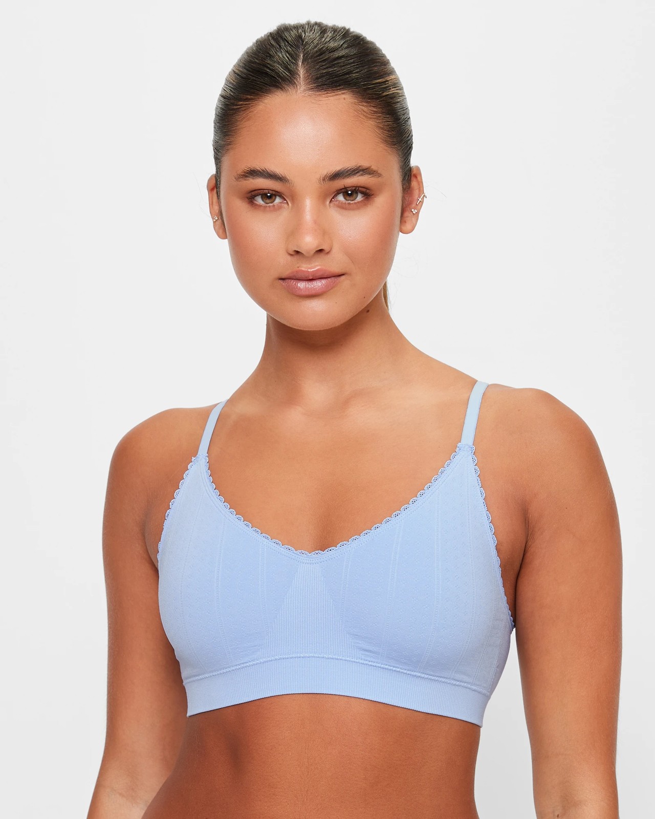 For the woman who loves comfort without the restriction of wire, the Lily Loves pointelle crop top is wirefree, has adjustable shoulder straps and removable padded cups.