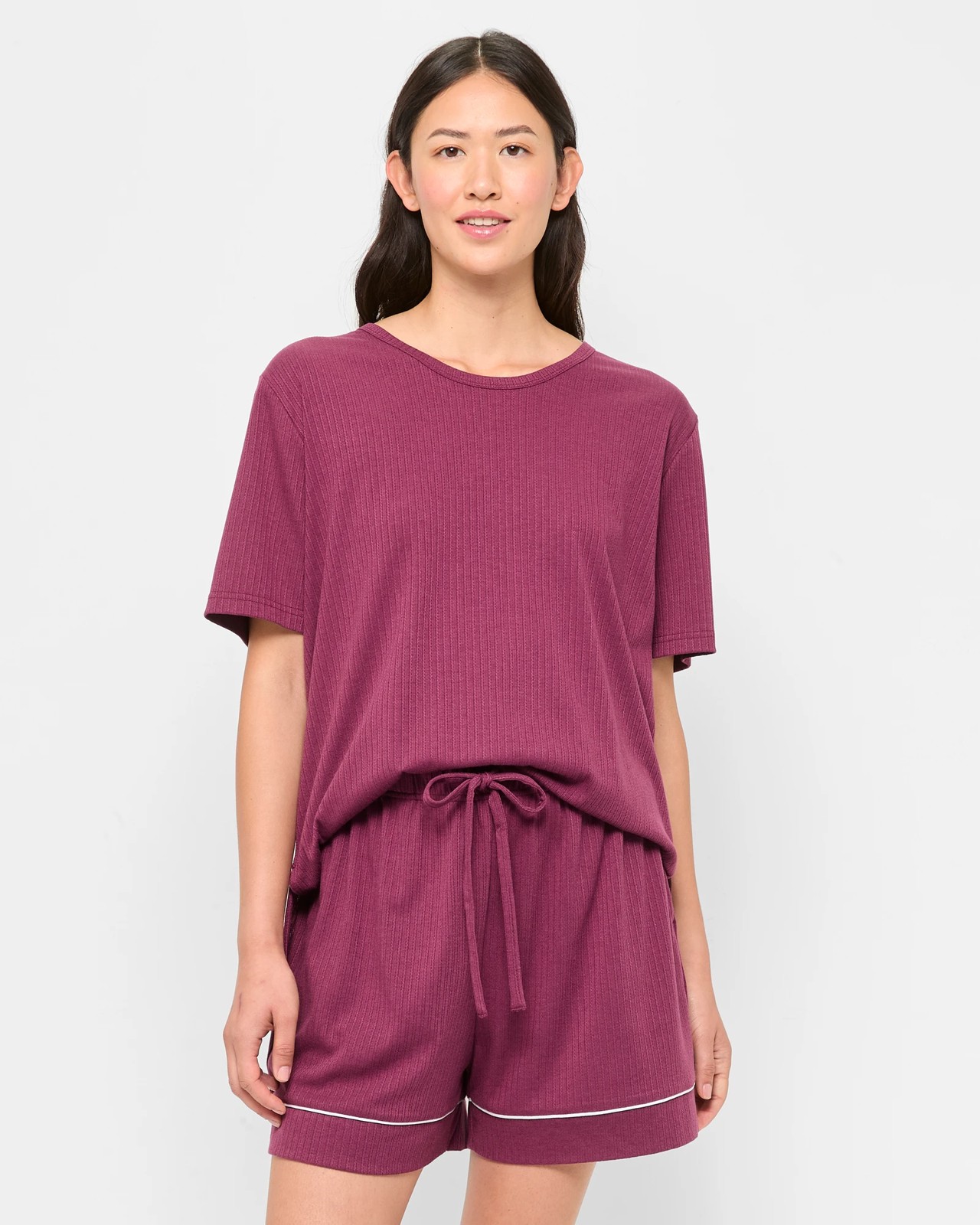 Indulge in the ultimate comfort with our Pointelle Rib Pyjama Sleep Shorts. Made with a blend of polyester and viscose, these shorts ensure an exceptionally soft feel with a hint of stretch elastane for added flexibility. Boasting a high-waisted design and a secure thick elastic waistband, they provide a great fit, while practical side seam pockets enhance the functionality. The intricate pointelle rib texture and white piping around the cuffs add a stylish touch. Complete your cosy nightwear look by pairing them with the matching sleep top available separately. Enjoy your nights in unparalleled comfort and style.