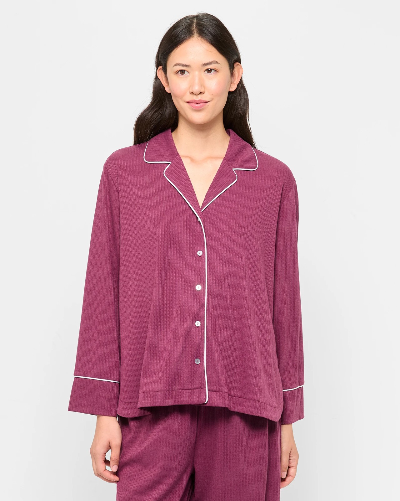 Enjoy exceptional comfort with our Women's Pointelle Rib Pyjama Sleep Top. Made from a soft blend of polyester and viscose, with added elastane for stretch, this top features a charming pointelle rib design and detailed piping around the neckline and front. The button-through front and long cuffed sleeves offer a classic touch, while the round neckline with small lapels ensures a snug fit. Pair it with the matching bottoms (sold separately) for a complete, cosy night-time outfit. Treat yourself to comfort and style tonight.