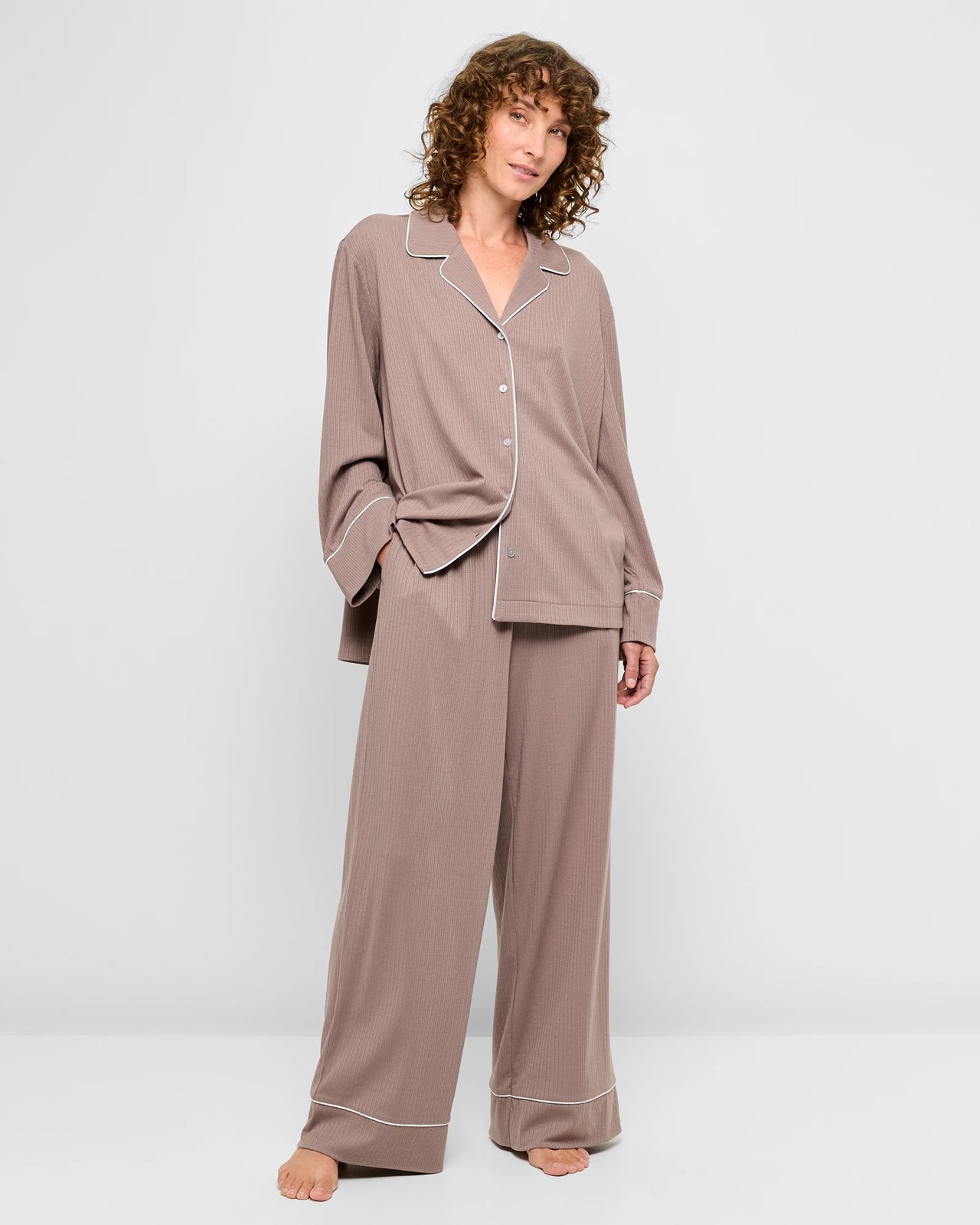 Experience unparalleled comfort and style with our Pointelle Rib Wide Leg Pyjama Sleep Pants. Made from a soft and cosy polyester/viscose blend, these pyjama bottoms are perfect for lounging or a peaceful night's sleep. The addition of stretch elastane ensures a snug yet flexible fit, while the charming pointelle rib texture adds a touch of sophistication. With a high waist and an elastic waistband complete with a practical drawstring, these pants stay comfortably in place. Featuring side seam pockets and a relaxed wide leg cut that reaches the ankles, they're as functional as they are fashionable. Combine with the matching sleep top for a complete cosy ensemble. Treat yourself to ultimate relaxation.