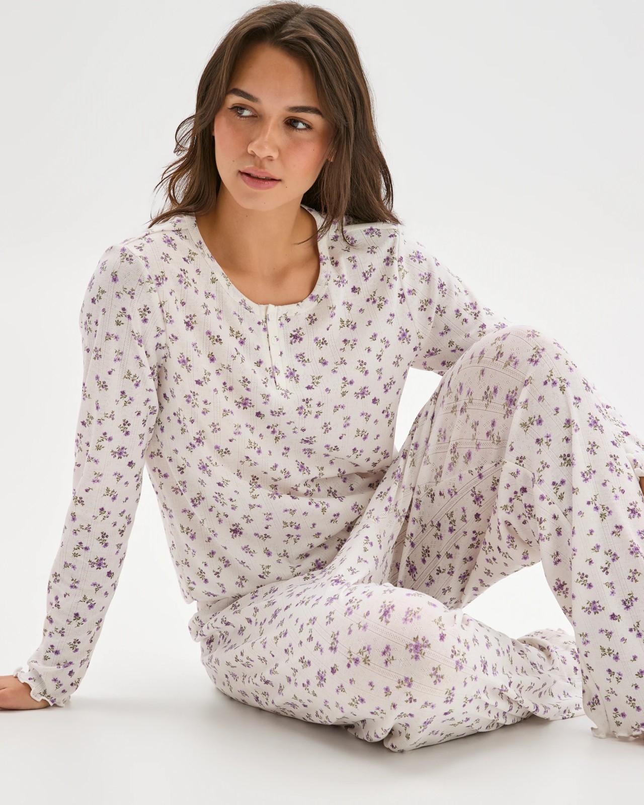 Brighten up your bedtime with the Pointelle Straight Leg Pants, designed for those who love to stretch out and unwind in utter comfort. Featuring a charming pointelle pattern and a thick elastic waistband with playful ruffle detail, these sleep pants add a little joy to your nightly wind-down. The straight leg shape keeps you looking smart and feeling comfortable, whether you're enjoying a good book on the sofa or heading to sleep. The wonderfully soft texture and classic style make these trousers a must-have for relaxing mornings and restful nights. Bring a cheerful, cosy upgrade to your nightwear—treat yourself today.