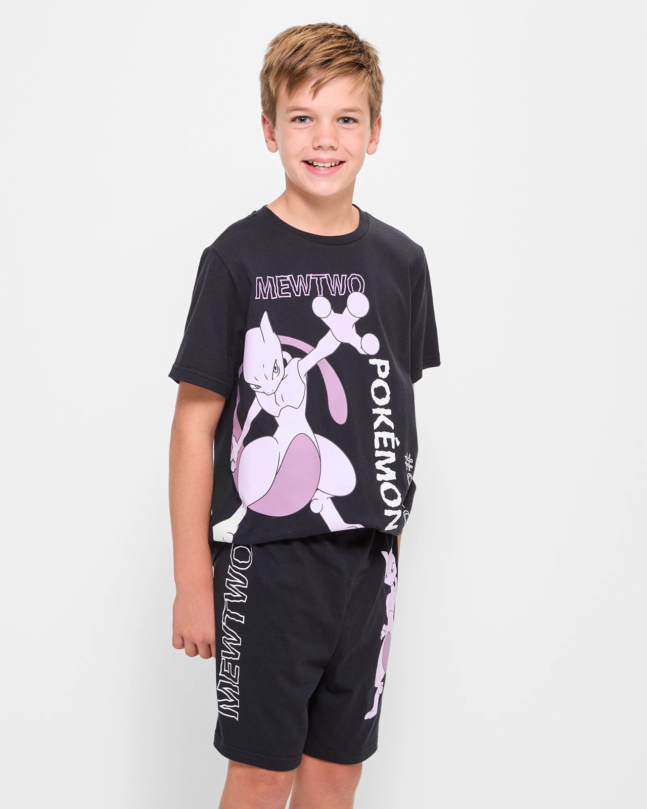 Let your little one dive into dreamland with this charming boys Pokemon sleep set featuring the iconic Mewtwo. Made from soft cotton for maximum comfort, this pyjama set includes a crew neck, short-sleeve top with a striking Mewtwo print on the front. The matching shorts sport an all-over print and have an elastic waistband for a perfect fit. Ideal for cosy nights, your child will adore the regular fit design and straight hem that promise ease of movement. Add this delightful set to their nightly routine and watch them drift off with a smile.