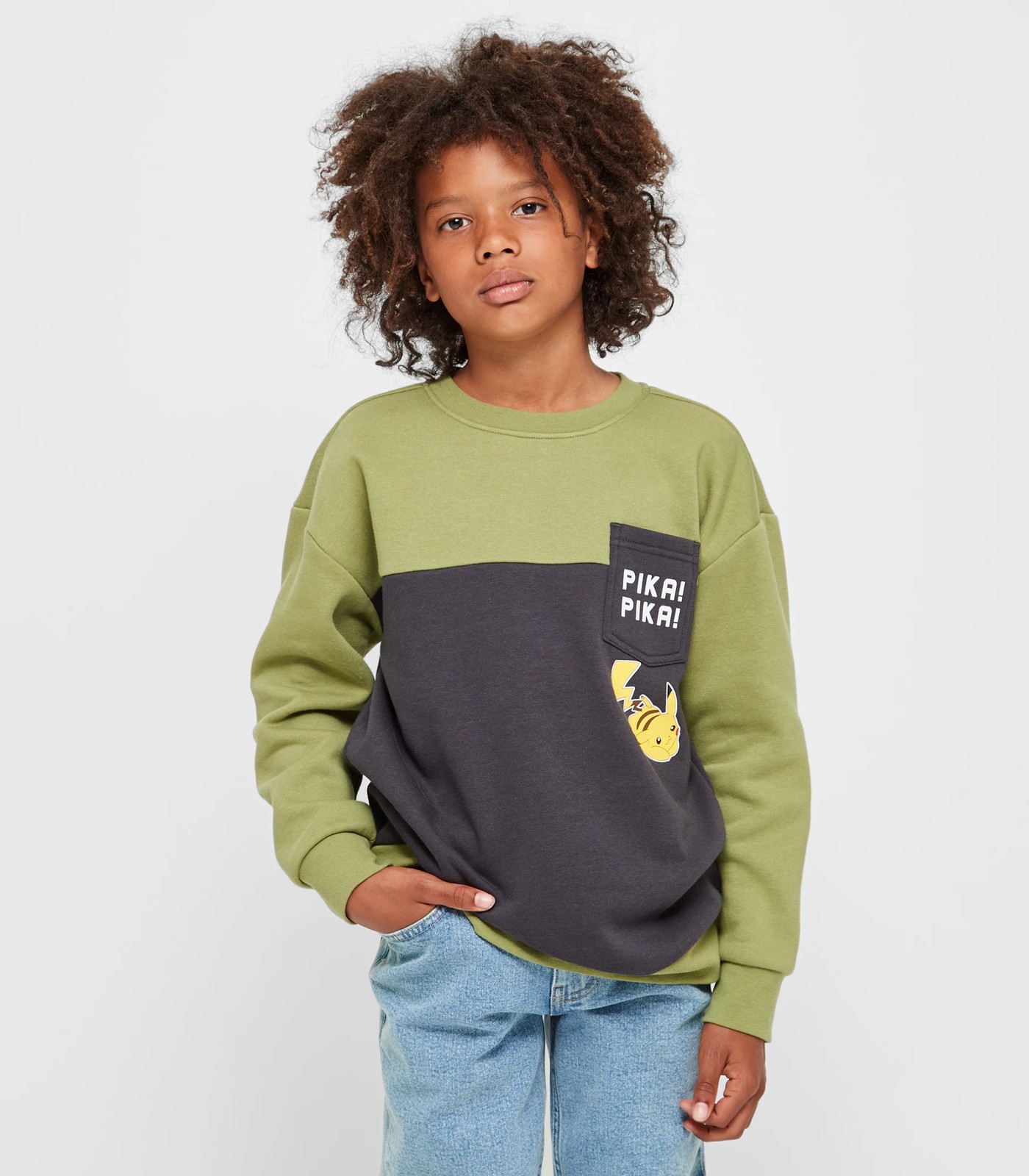 Upgrade your little one's wardrobe with this Pokemon Pikachu Spliced Jumper. Made from a comfortable cotton-rich fabric, this jumper features a stylish spliced design with a khaki colourway. The ribbed crew neck and long sleeves with ribbed cuffs ensure a snug fit, while the straight ribbed hem adds a touch of modernity. Complete with a chest pocket with a fun Pokemon print and a large print on the back, this jumper is perfect for any Pokemon fan. The fleece lining adds extra warmth on chilly days. Add a touch of adventure and style to your child's outfit with this Pikachu jumper.