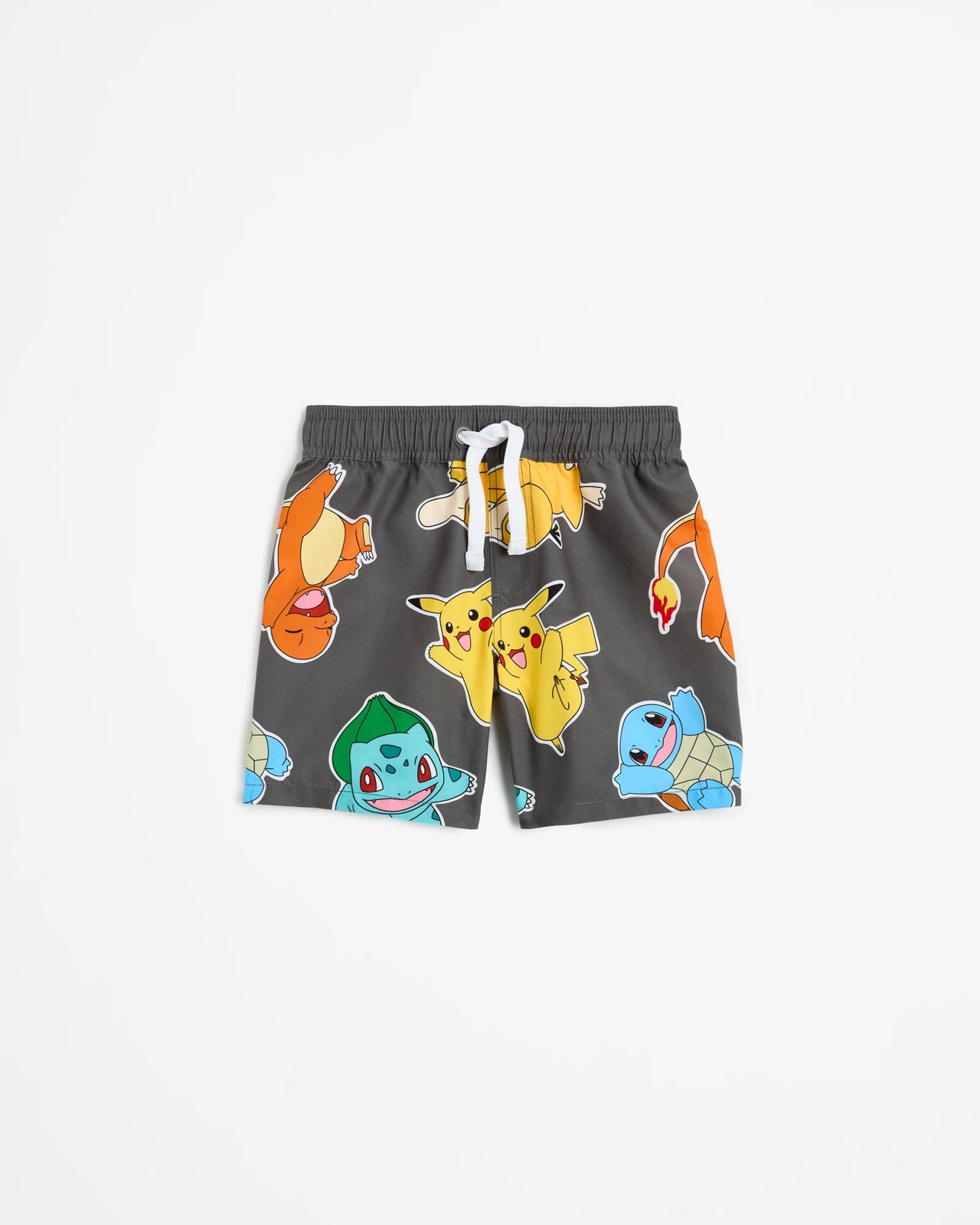 Dive into the world of Pokemon with these stylish boys' swim boardshorts! Made from comfortable polyester, these grey shorts feature an all-over Pokemon print that will delight any young fan. An elastic waistband with a drawcord ensures the perfect fit, while a convenient back pocket with a drainage hole keeps small essentials safe. Ideal for fun at the pool or the beach, these boardshorts are a must-have for any adventure. Grab a pair today and make every splash a Pokemon moment!