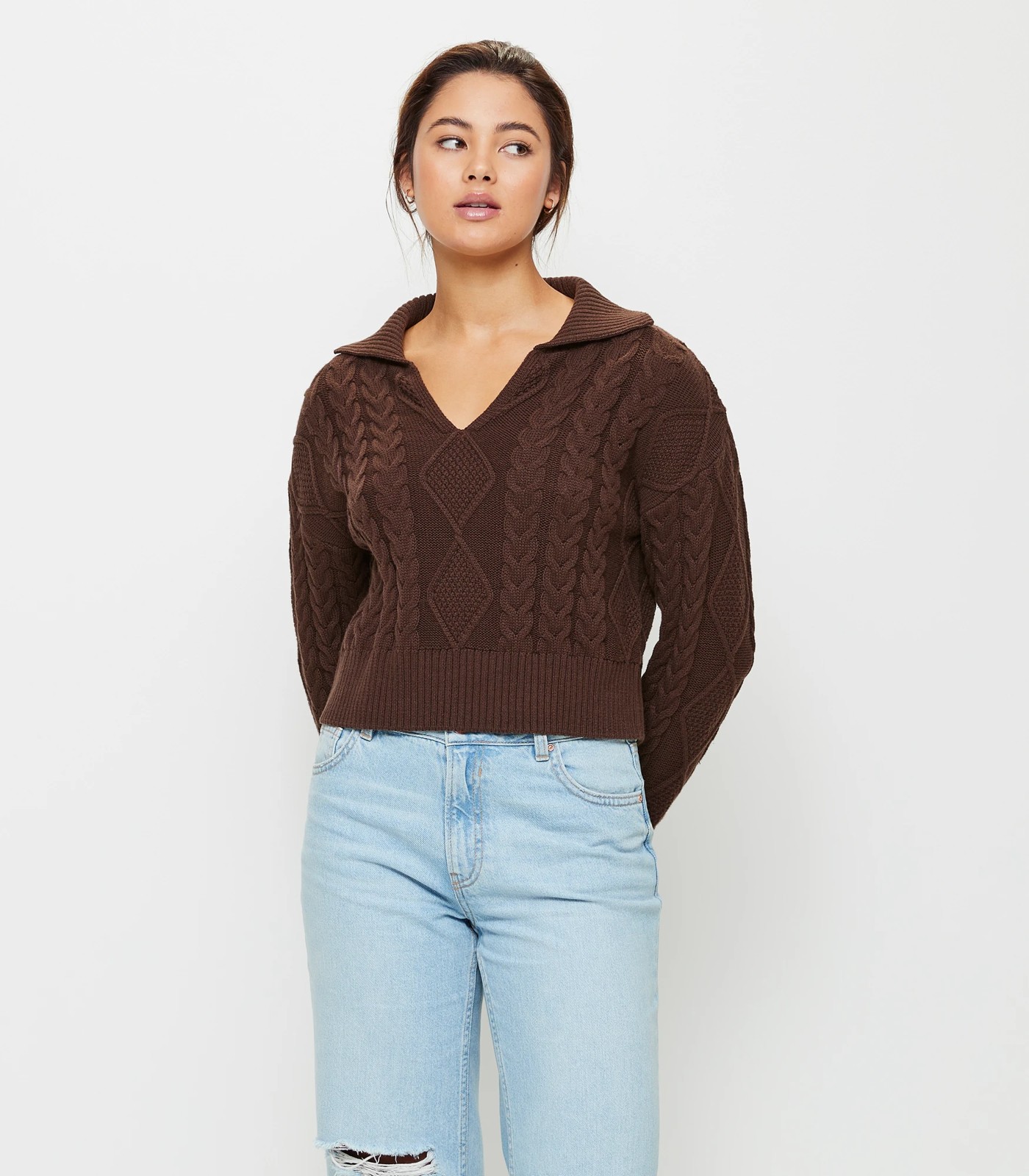 Polo Collar Cable Knit Cropped Jumper - Lily Loves