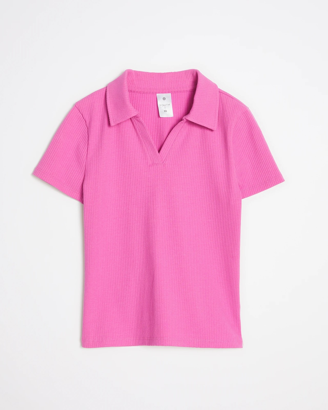 This cotton rich rib Polo Rib T-shirt is a great fit for girls. It features a regular fit with great stretch, a collared neckline and short sleeves. The straight hem ensures that it looks as good as it feels. Perfect for when comfort and style come together, this Polo Rib T-shirt is an essential addition to any girl's wardrobe.