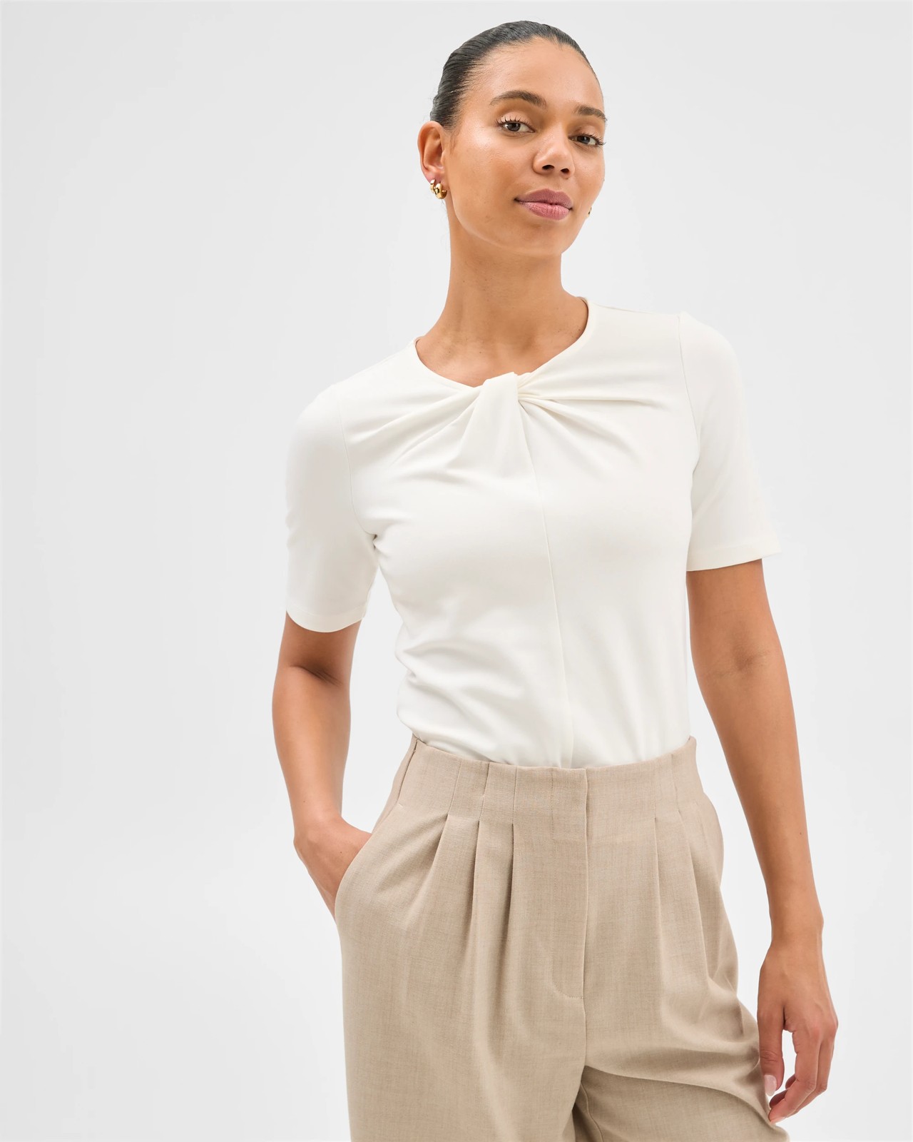 • Rounded neckline with centre twist detail