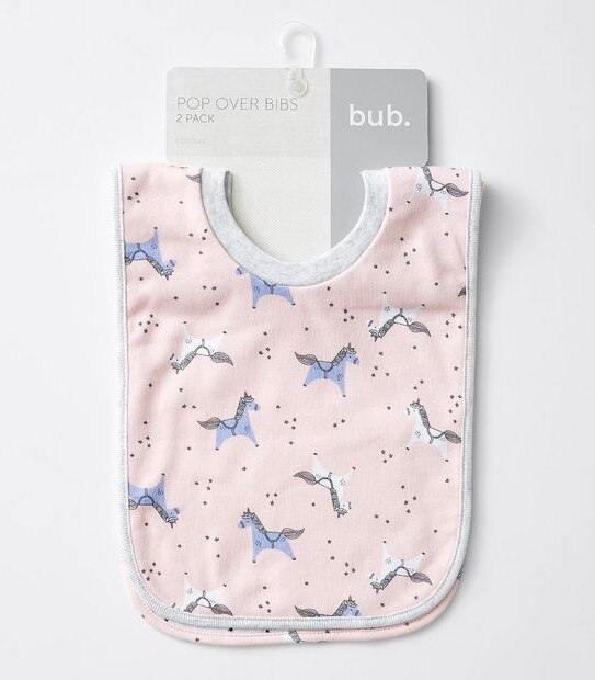 Our 2 pack of baby pop over bibs provides great value for money. Crafted in a soft cotton, each bib has a ribbed neckline for easy removal.- Ages: 0+ months.