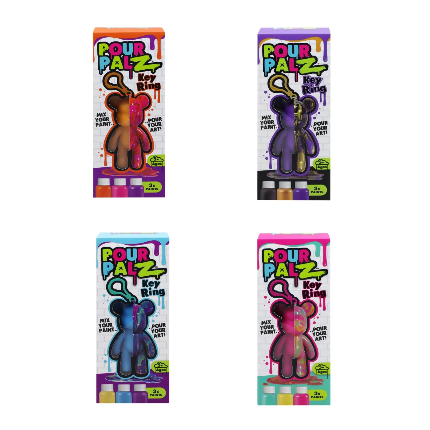 Introducing the Pour PalZ Mini Paint Bear Keyring! These delightful accessories combine whimsy and artistry, featuring charming bear designs to adorn with vibrant, fluid paint patterns. Each keyring starts with a blank canvas for you to paint pour your art, ensuring that no two bears are alike, making them perfect for art enthusiasts and collectors alike.Made from durable materials, these keyrings are not only fun but also practical - ideal for securing your keys, attaching to bags or simply adding a playful touch to your everyday items. Once complete, your colourful design will add a splash of creativity to any accessory collection, making them great conversation starters.Whether you re treating yourself or looking for a thoughtful gift for a friend, the Pour PalZ Paint Pouring Art Bear Keyrings are sure to bring joy and artistic flair to anyone s day!Your pour, your way.