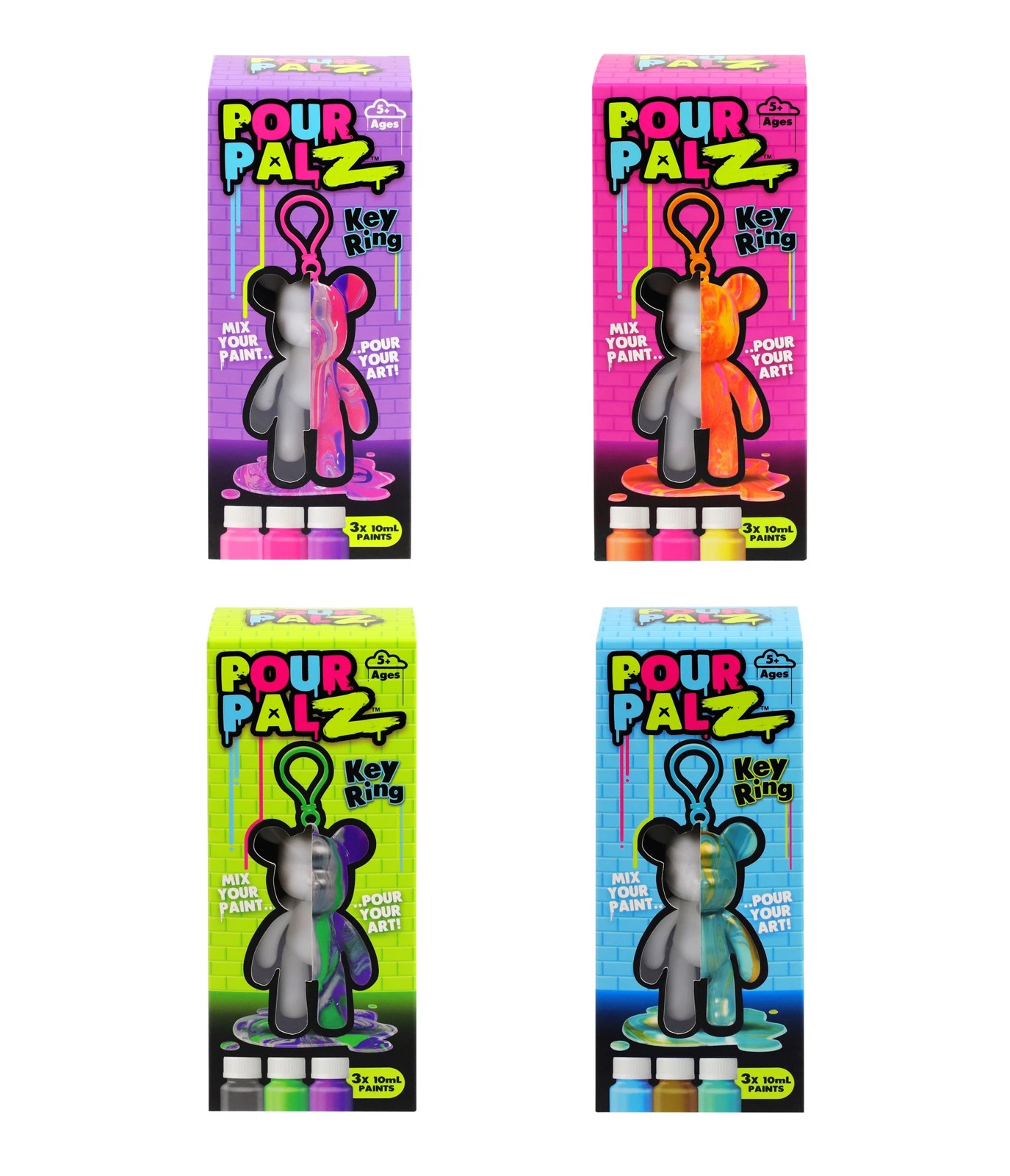 Introducing the Pour PalZ Mini Paint Bear Keyring! These delightful accessories combine whimsy and artistry, featuring charming bear designs to adorn with vibrant, fluid paint patterns. Each keyring starts with a blank canvas for you to paint pour your art, ensuring that no two bears are alike, making them perfect for art enthusiasts and collectors alike.