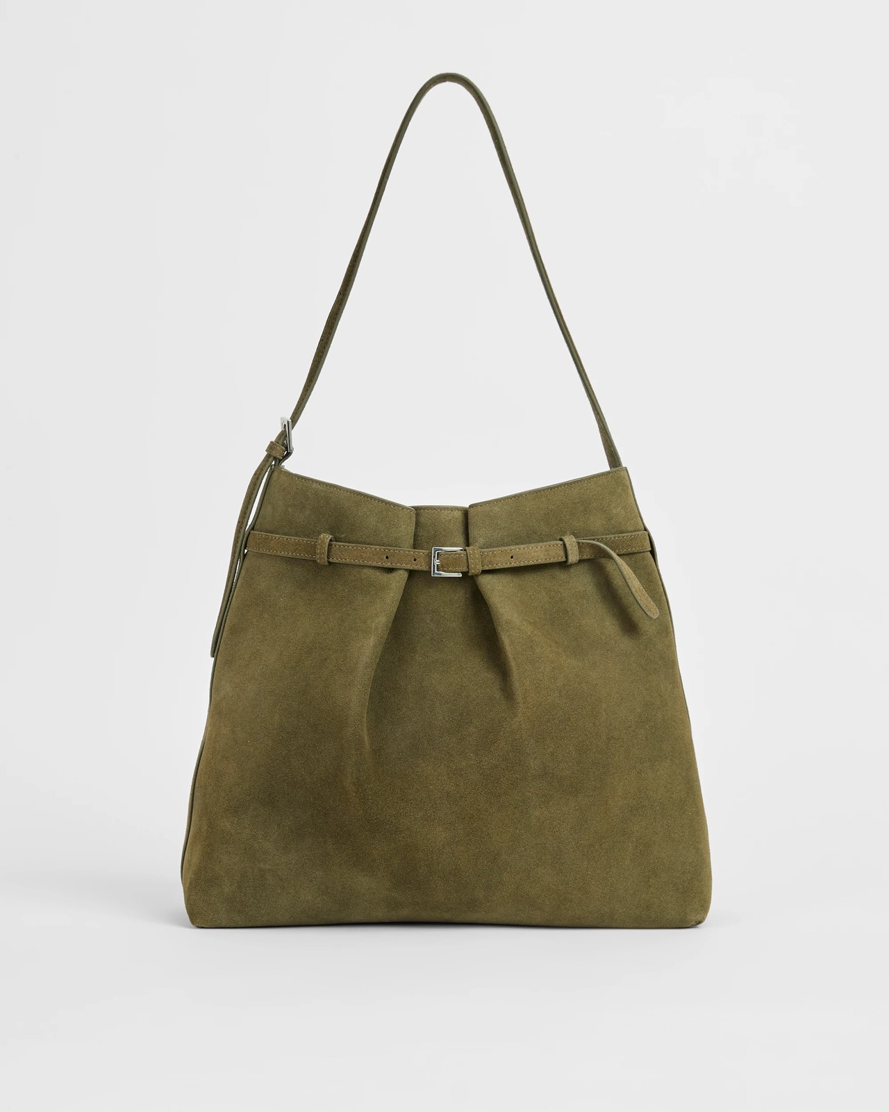 Premium Suede Leather Belted Bucket Bag - Khaki 1 of 3