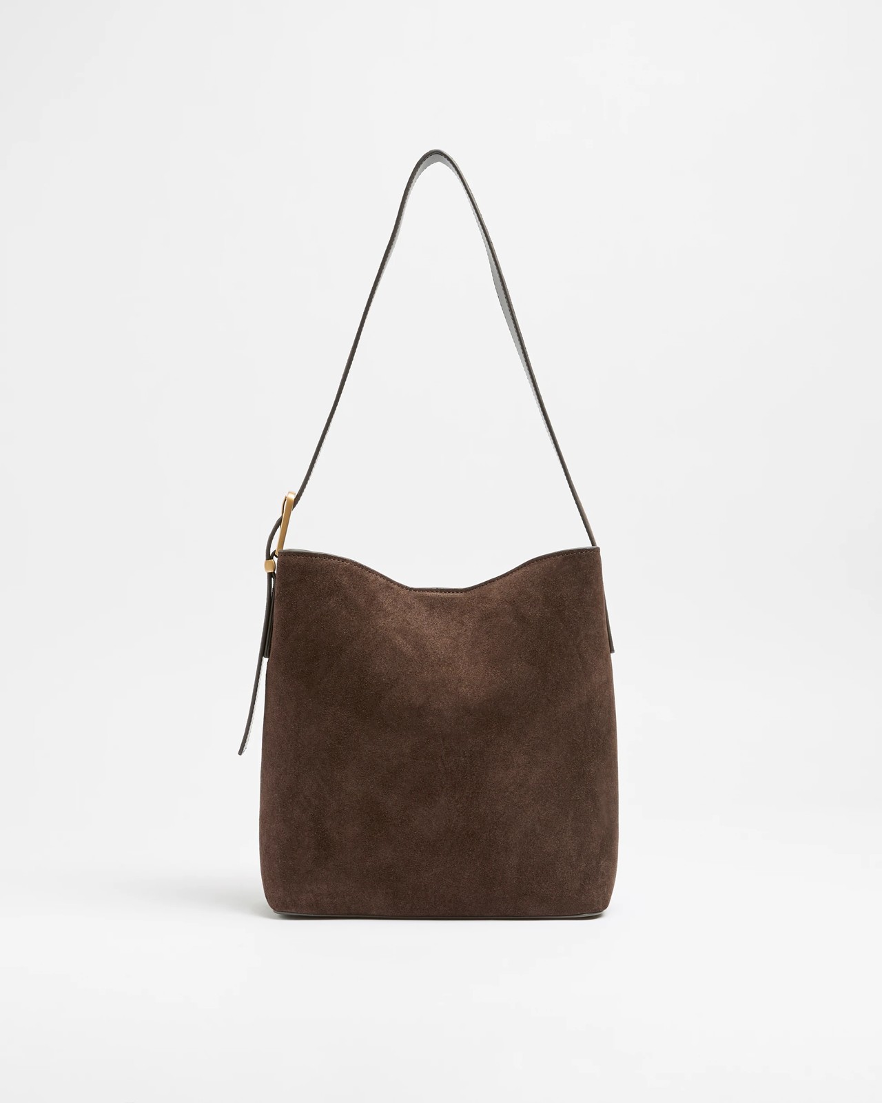 Step out with confidence carrying this premium suede leather bucket tote bag, designed to blend comfort and style for busy days. The smooth premium suede finish and generous space make it a wonderful choice for those who need a practical yet fashionable accessory. Its roomy interior features multiple compartments, including a handy removable zipped pouch, allowing you to keep all your belongings well-organised. The thick shoulder strap, paired with an adjustable gold-coloured buckle, adds a fashionable touch while ensuring your comfort throughout the day. With a flat base for added convenience and a dust bag included to help protect your new favourite bag, it's a must-have addition to any wardrobe. Give your everyday look a fresh update with this inviting tote.