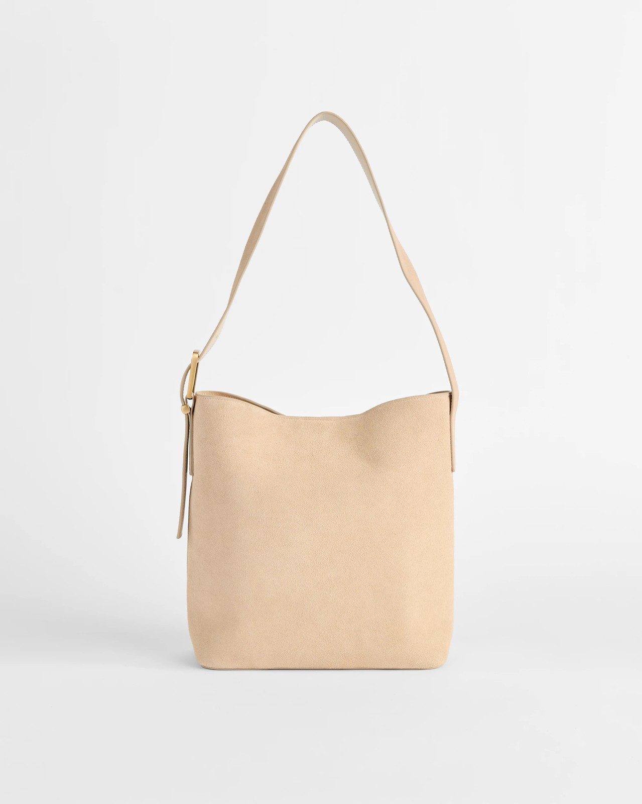 Step out with confidence carrying this premium suede leather bucket tote bag, designed to blend comfort and style for busy days. The smooth premium suede finish and generous space make it a wonderful choice for those who need a practical yet fashionable accessory. Its roomy interior features multiple compartments, including a handy removable zipped pouch, allowing you to keep all your belongings well-organised. The thick shoulder strap, paired with an adjustable gold-coloured buckle, adds a fashionable touch while ensuring your comfort throughout the day. With a flat base for added convenience and a dust bag included to help protect your new favourite bag, it's a must-have addition to any wardrobe. Give your everyday look a fresh update with this inviting tote.