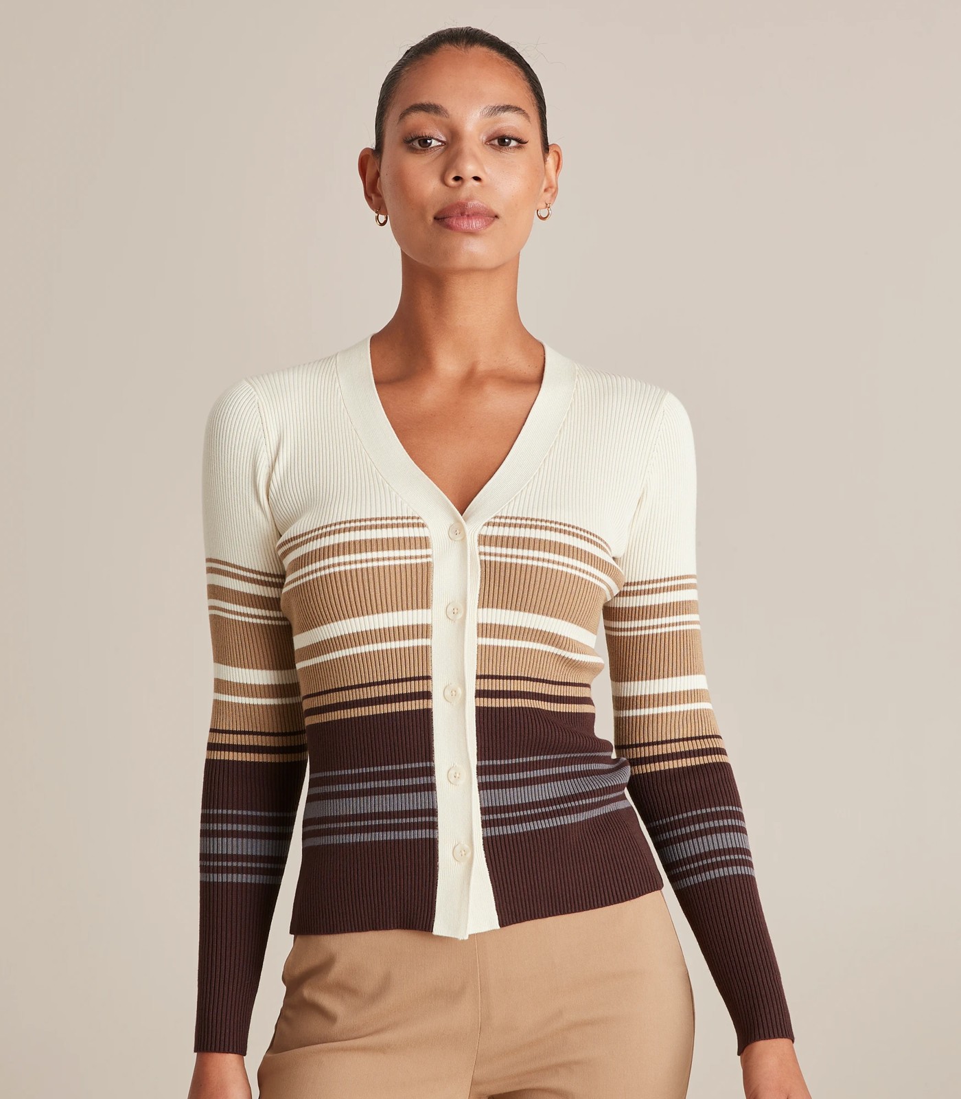 Classic style comes easy with our Preview crepe knit top. It features an all over ribbed knit material, button through front and a v-neckline.