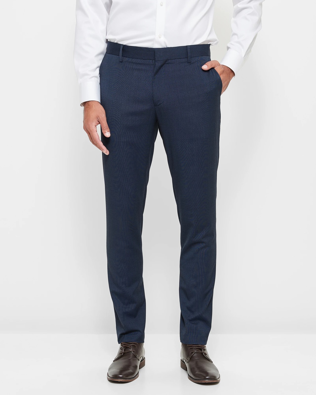 The navy blue Preview fashion suit trousers offers a tailored fit with a clasp, zip and inner button closure. It comes with side and back pockets and has soft to the touch material. Pair with the matching jacket to complete the suit (sold separately).